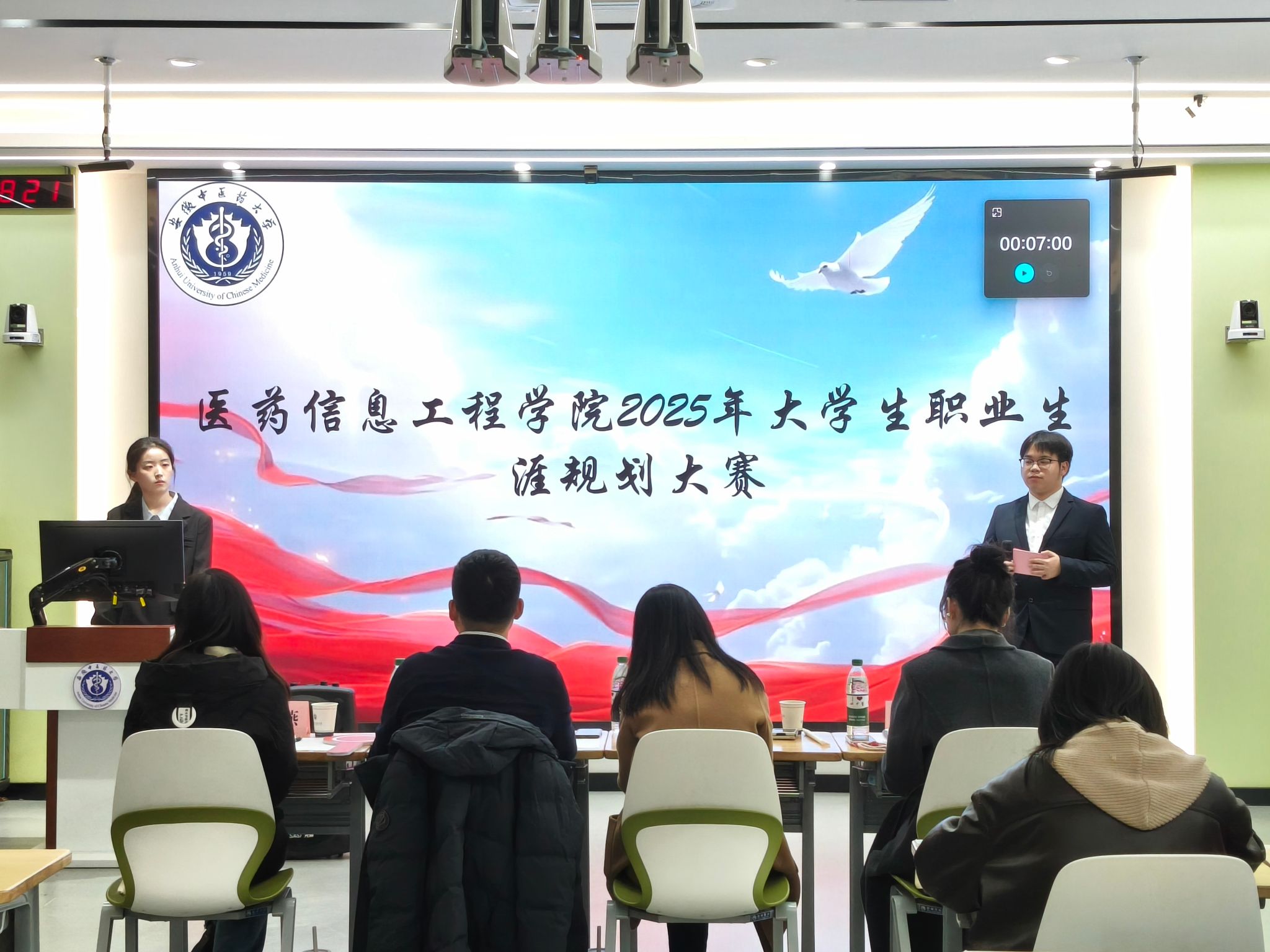 为引导学生科学规划职业发展,提升就业竞争力,11月17日,医药信息工程学院举办2025年大学生职业生涯规划大赛。校学生处副处长吴亦菲、医药信息工程学院党委副书记王向阳、合肥天地宽视信息科技有限公司招聘经理王小燕、科大讯飞股份有限公司职业素养导师叶晨出席本次比赛并担任评委。经过班级推荐、学院遴选,最终9名优秀选手晋级决赛。