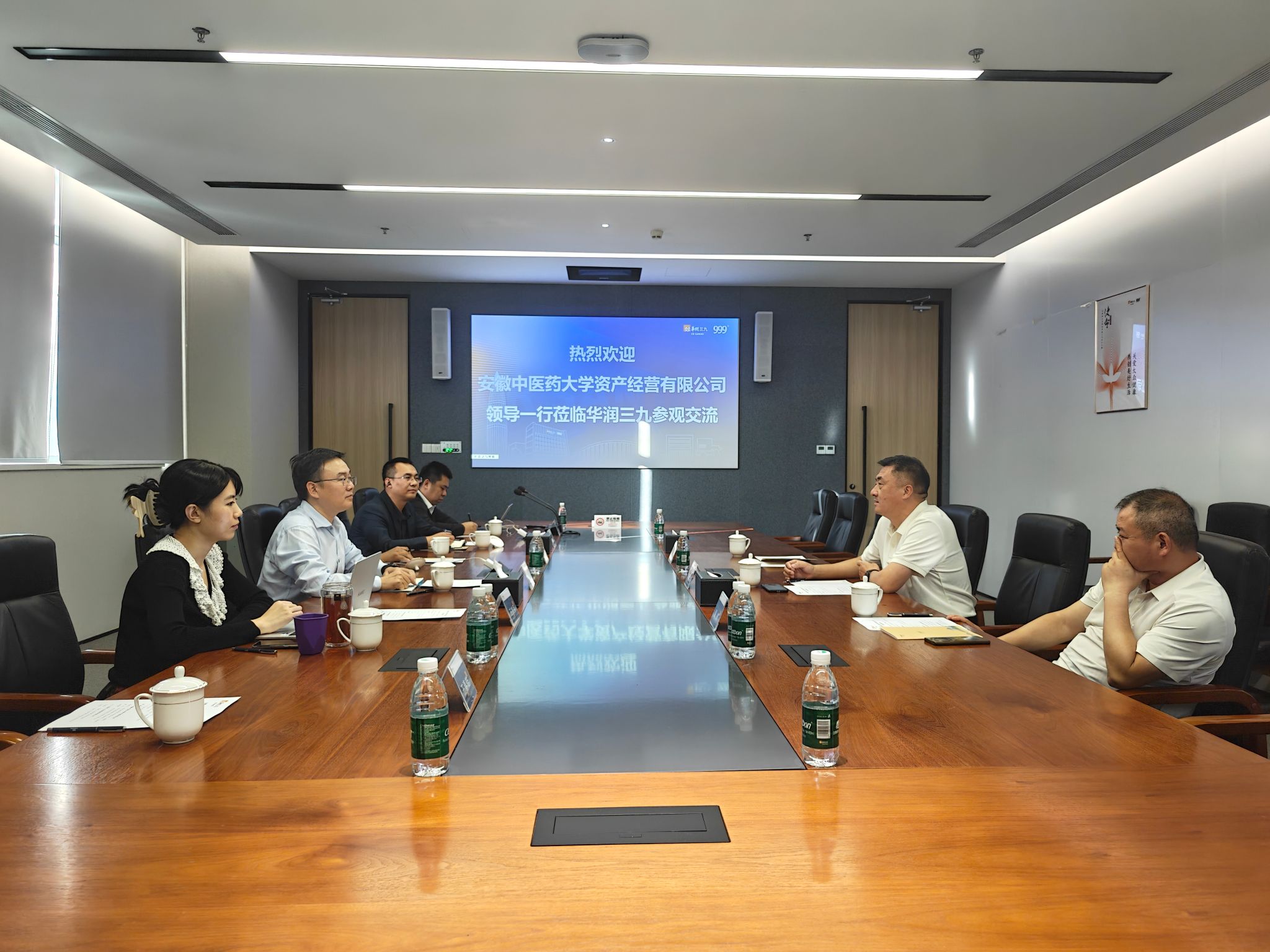 11月17日,资产经营有限公司党委书记、董事长孙道礼,党委副书记、总经理蔡杰等一行赴华润三九医药股份有限公司进行合作洽谈。华润三九国药事业部副总经理王俊浩、投资发展高级经理王姣月、产业拓展高级经理兰景南、安徽区域经理等相关负责人参加座谈。