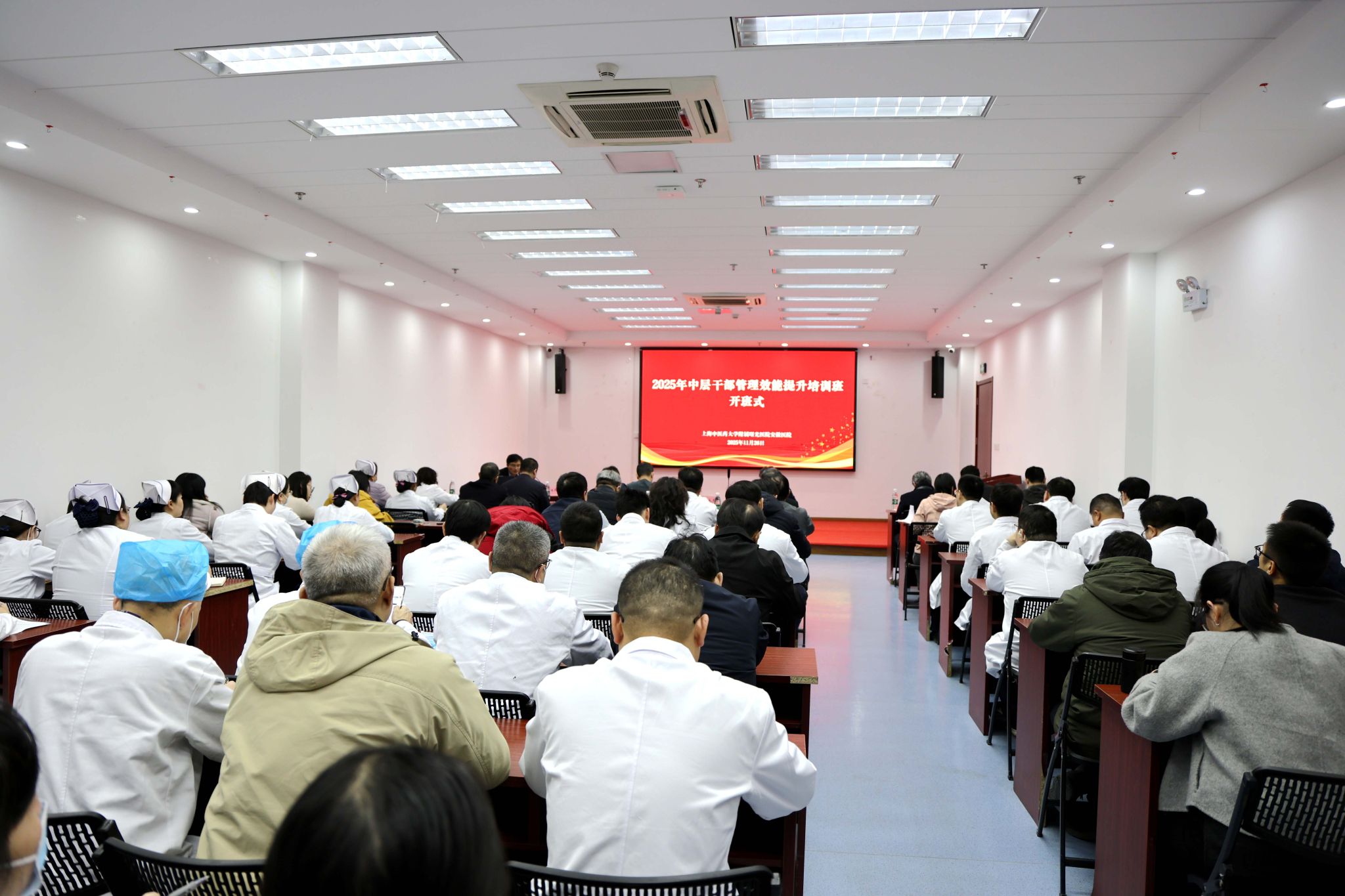 11月26日,曙光安徽医院2025年度中层干部管理效能提升培训班顺利开班。本次培训聚焦提升曙光安徽医院中层干部管理效能,课程设计紧扣医院发展实际,内容涵盖医保政策解读、新形势下医院高质量发展、高效团队建设、学科发展乃至新媒体品牌运营等多个维度,分三期进行。曙光安徽医院领导班子及全体中层干部100余人参加开班式暨第一期培训。