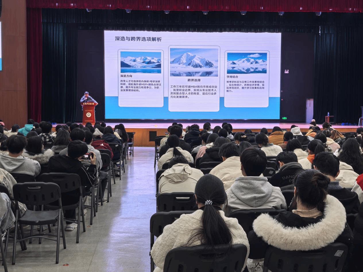 为进一步引导毕业生树立正确的就业观念,提升就业竞争力,扎实推进2026届毕业生就业工作,11月27日晚,药学院在大学生活动中心召开2026届毕业生就业动员会暨校友经验分享会。学院党委副书记陶曜天,药学院优秀校友、华润三九医药有限公司医馆运营经理范朗,全体毕业班辅导员以及2026届全体毕业生参加会议。