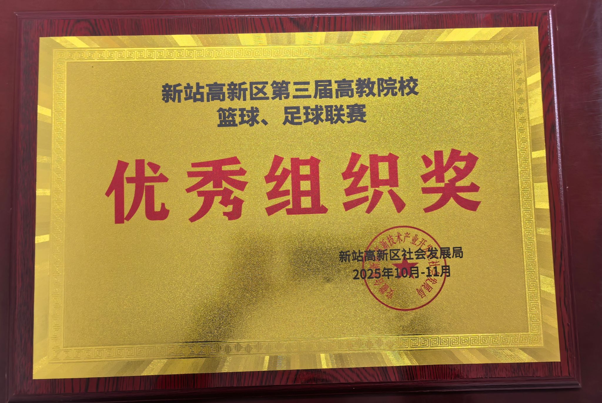 足篮并进,青春同行。11月28日,2025年第三届新站高新区高教院校篮球、足球联赛圆满落下帷幕我校参加大学生足球、篮球4个组别的赛事,取得优异成绩。