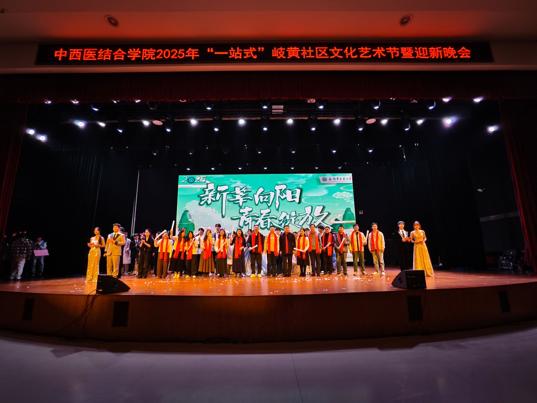 12月4日晚,中西医结合学院在大学生活动中心举办2025年“一站式”岐黄社区文化艺术节暨“新莘向阳 青春绽放”迎新晚会。学生处处长赵伟,校团委书记彭程、团委副书记徐慧,学院党政领导、专任教师代表和全体行政老师出席晚会,与同学们欢聚一堂,共赏这场融青春活力与中医底蕴于一体的文化盛宴。