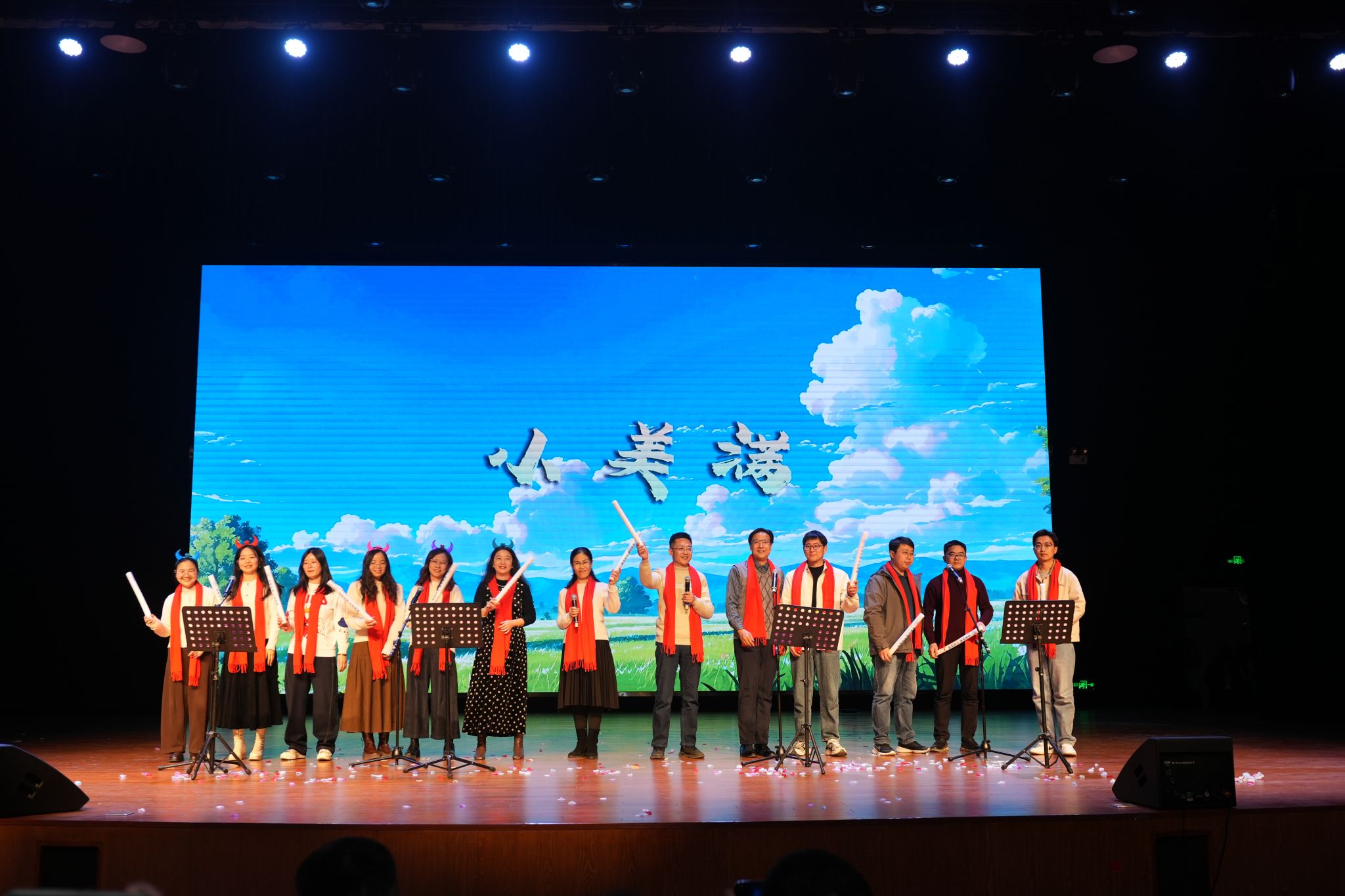 晚会尾声,学院领导与辅导员们带来压轴演唱《小美满》,温柔旋律缓缓流淌,承载着老师们对我们中西医结合学院学子殷殷期盼,台下学子纷纷挥起荧光棒,点点星光与舞台灯光交相辉映,构成一幅温馨动人的画面。在热烈氛围中,2025年“一站式”岐黄社区文化艺术节暨迎新晚会圆满结束。