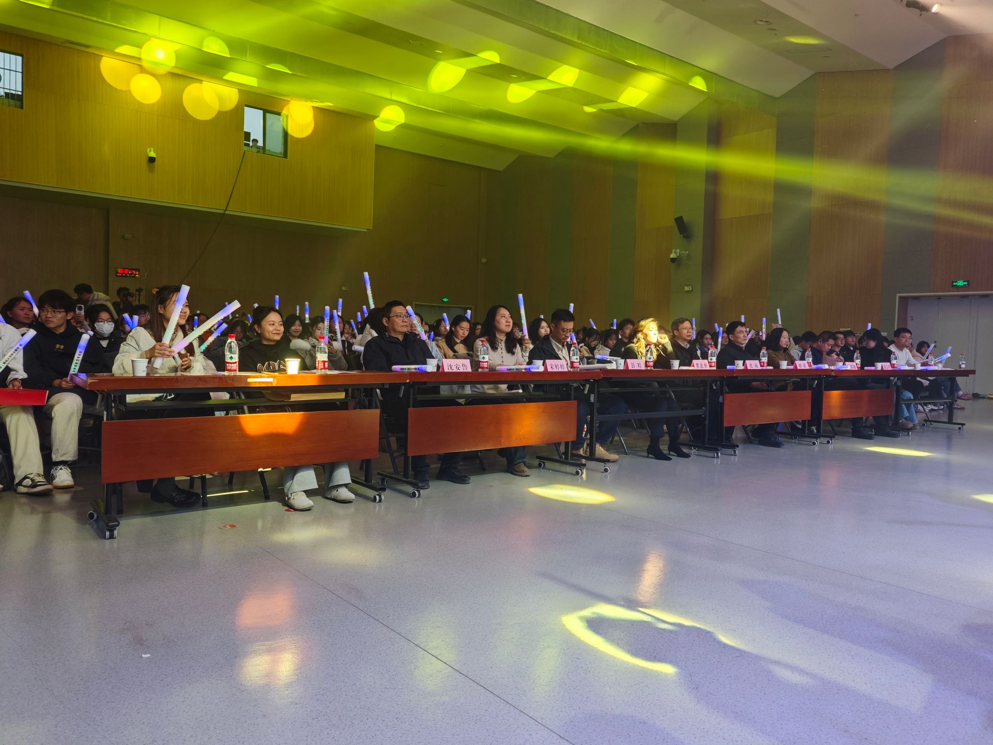 现场气氛热烈高涨,晚会以“杏林新韵 青春启航”、“初心弥坚 仁心砺炼”、“远志凌云 使命担当”三大篇章串联起多元精彩,青年艺术中心乐队演绎的《重楼》激昂澎湃,燃动全场;群舞《森林之子》灵动飘逸,尽显青春活力;《武韵风华》刚柔并济,彰显传统武术魅力;古典舞《清庭云月》典雅端庄,尽显东方之美;歌曲串烧《童年》唤醒共同记忆,引发全场共鸣;教职工节目精彩纷呈,双人对唱《生命的光亮》温情脉脉,传递师者担当与育人初心,舞蹈《上春山》活力四射,尽显青春朝气。晚会穿插三轮抽奖环节点燃全场热情,幸运学子登台领奖,笑意盈盈,现场掌声与欢呼声此起彼伏,为晚会增添满满温情与惊喜。