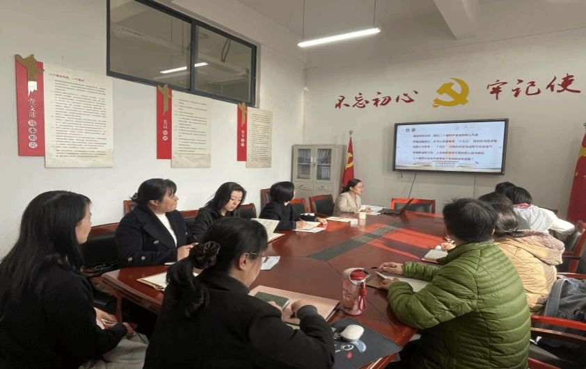 程玲结合教育领域实际,解读“深化教育改革、推进高质量教育体系建设”等部署,引导党员教师思考如何将国家发展目标与本职教学科研工作结合。