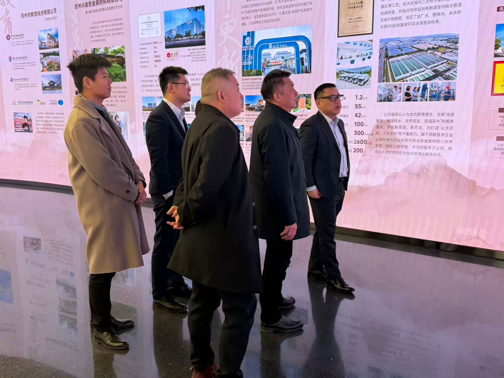 12月15日资产经营有限公司党委书记、董事长孙道礼,党委副书记、总经理蔡杰等一行赴江苏吴中集团有限公司调研交流,江苏吴中集团有限公司董事、总裁施凯,执行副总裁张成,投资发展部总经理杨闪闪,环秀晓筑养生度假村总经理施睿予以接洽。