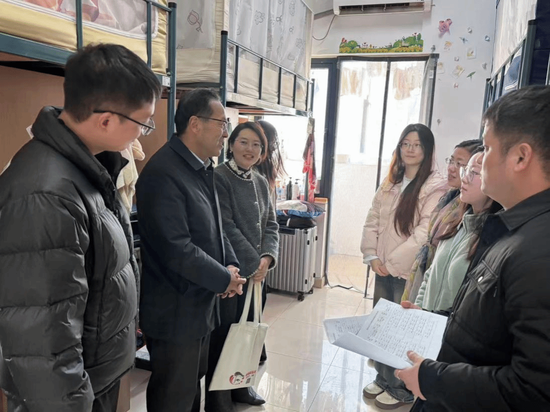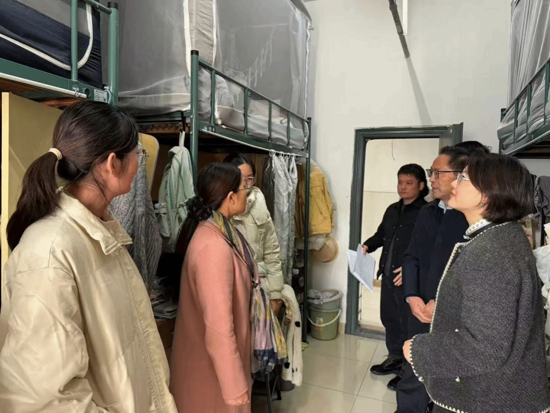 院领导一行走访了不同专业、不同年级的男女生学生宿舍,重点查看环境卫生、用电安全、物品摆放、宿舍文化等情况,并与同学们亲切交流,了解大家的日常学习、生活状况、防电诈教育、诚信考试等,对整洁有序、安全温馨的宿舍予以肯定,也对存在的问题现场提出整改建议,叮嘱同学们增强安全意识,共同维护好宿舍环境。(高辰/文图 叶兰兰/审核)
