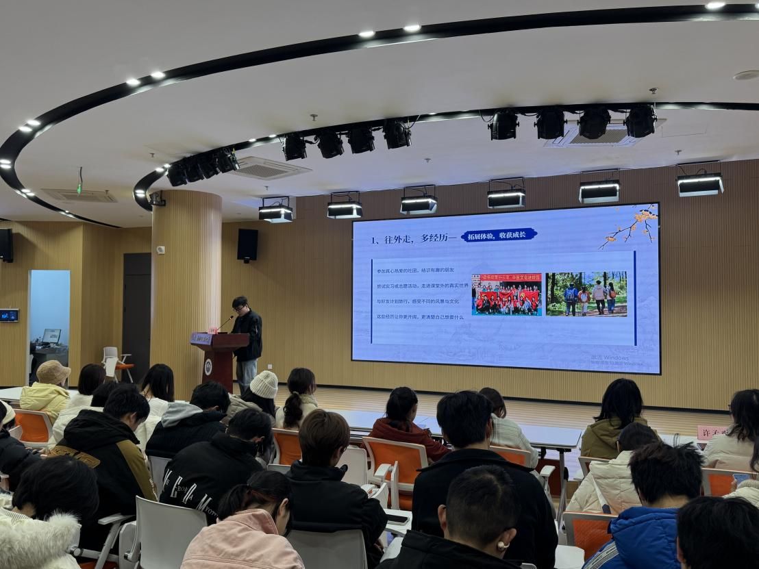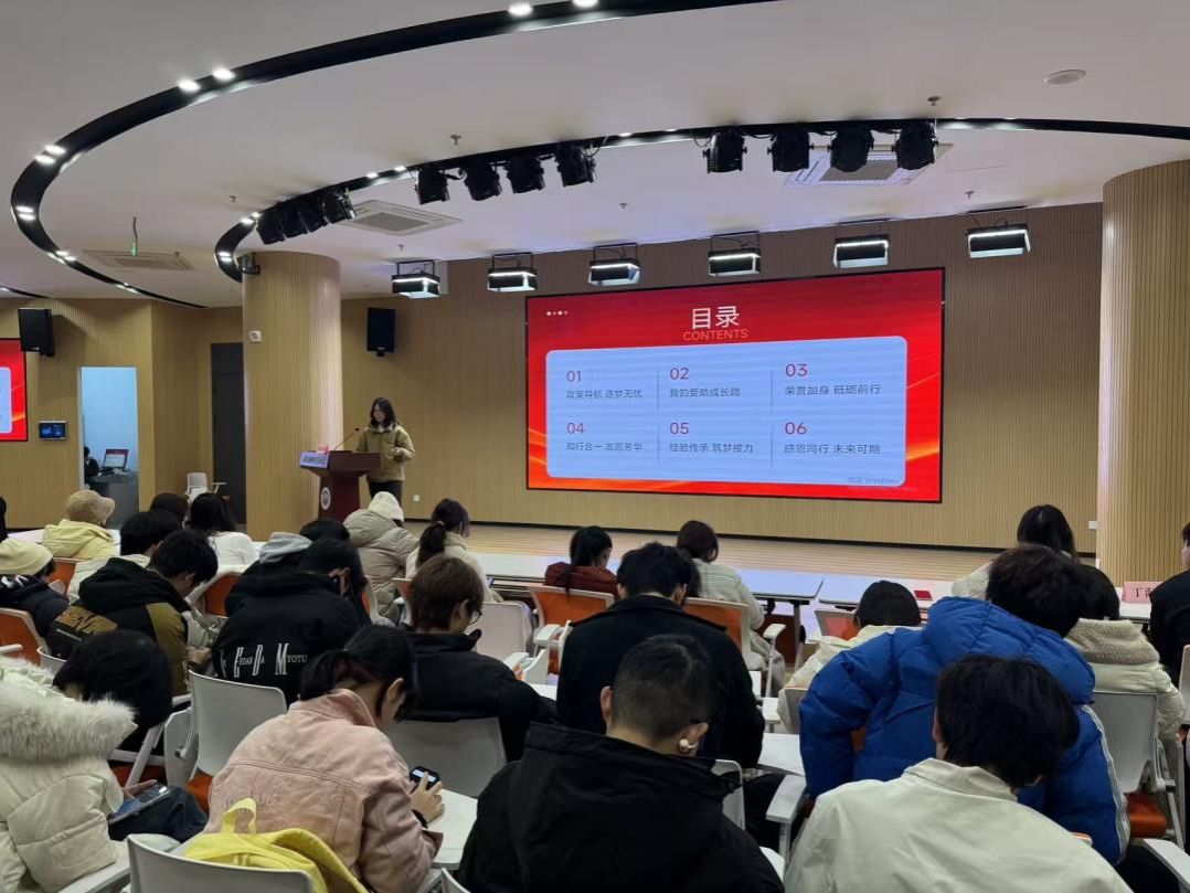 为发挥榜样示范引领作用,传递自立自强、励志成才的精神力量,进一步推动资助育人工作走深走实,12 月 17 日,人文与国际教育交流学院在学校“一站式岐黄社区” 路演大厅成功举办第十六届优秀大学生事迹暨“精诚资助大使”宣讲会。学院党总支副书记顾义俊主持会议,学院新生辅导员、优秀学生代表及 2025 级全体本科生、硕士生新生参加本次活动。