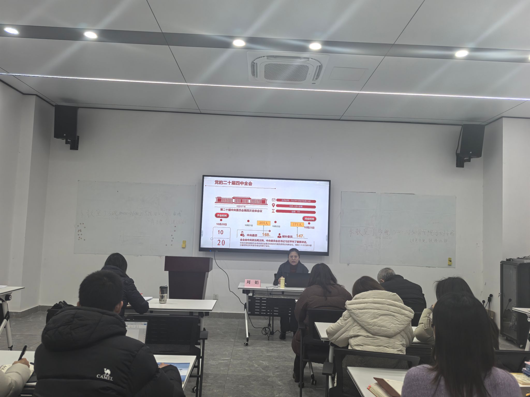 为学习贯彻党的二十届四中全会精神,切实把思想和行动统一到全会部署要求上来,12月24日,针灸推拿学院在元化草堂举办专题报告会,马克思主义学院硕士生导师周娟教授以《迈向伟大复兴的制度蓝图—深入学习领会党的二十届四中全会精神》为题,为全院教师作辅导报告。学院党政领导班子、教职工参加学习。