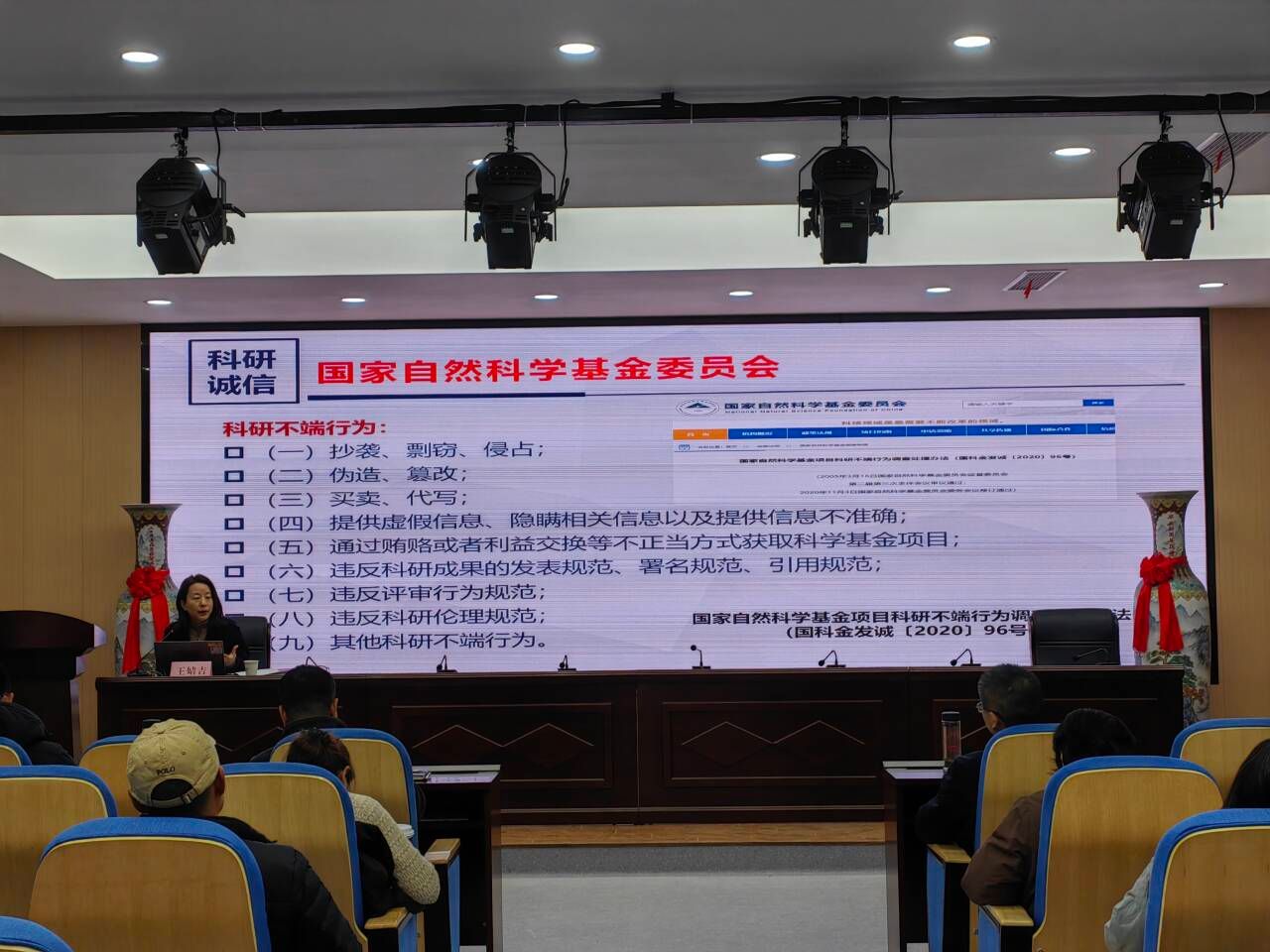 为进一步强化师德师风建设,12月24日,医药经济管理学院举办“不忘初心 诚信科研”专题讲座,特邀学校科技处副处长王婧吉担任主讲。学院全体教职工及研究生参加此次培训,系统学习科研诚信与学术规范相关要求。