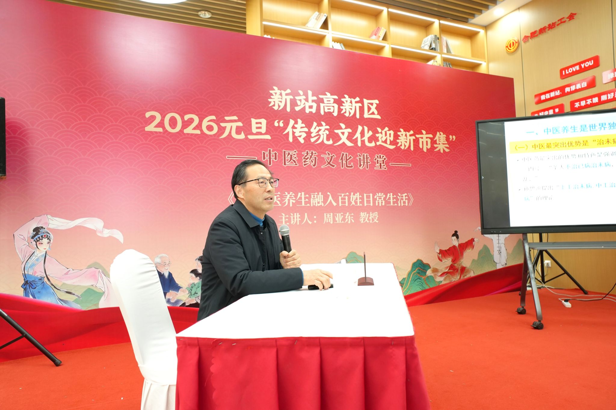 人文与国际教育交流学院院长周亚东教授受邀面向新站高新区职工主讲《让中医养生融入百姓日常生活》健康讲座。他以通俗易懂的语言,从中医“治未病”的理念入手,讲解了中医养生的基本原则和日常方法。汉语国际教育系卜菲菲副教授受邀主讲《皖风徽韵中的中医药文化智慧》,深入浅出的解读了中医药文化的内涵与外延、“南新安 北华佗”安徽中医药文化及实践范例。