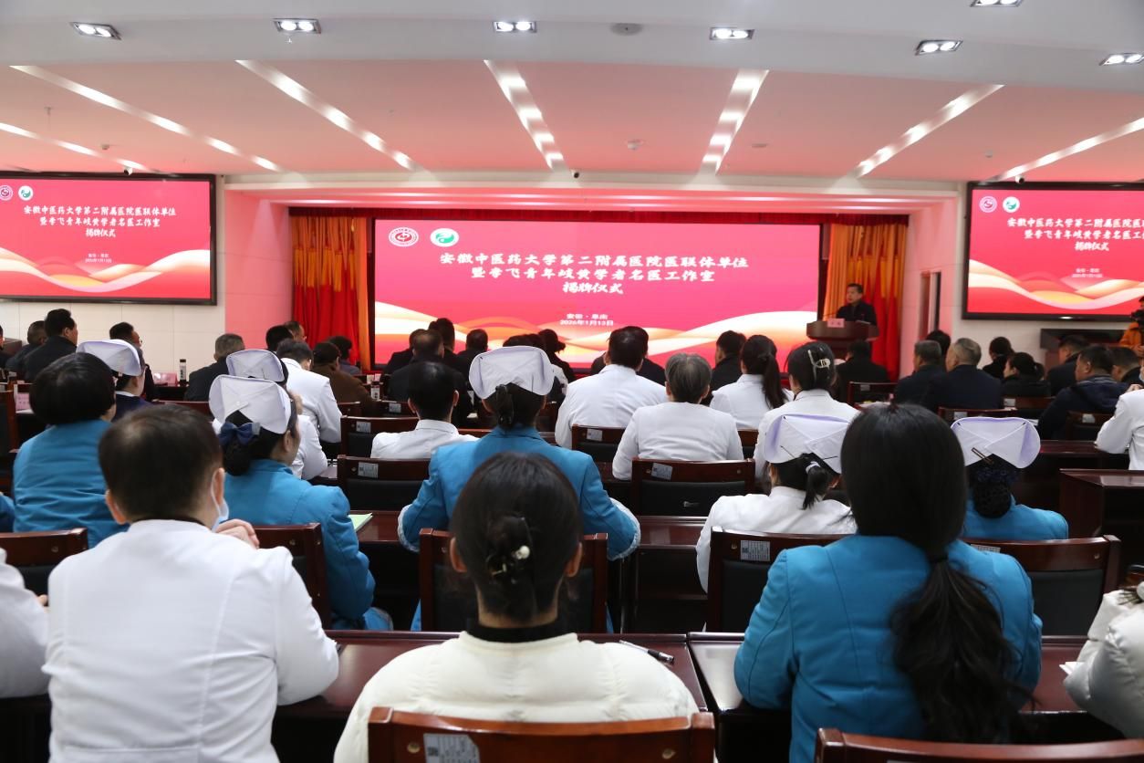 1月13日上午,第二附属医院医联体单位暨李飞青年岐黄学者名医工作室揭牌仪式在阜南县中医院举行。全国名中医、安徽省中医药科学院临床分院学术院长、原安徽省中医院院长、原安徽省针灸医院院长杨骏,医院党委书记雷黎,副院长、青年岐黄学者李飞,阜阳市卫健委中医科科长刘海彬等出席揭牌仪式。阜南县人民政府副县长杨丽群参加活动并致辞,活动由阜南县卫健委党组书记、主任于伟主持。阜南县内各医疗机构主要负责同志,阜南县中医院党政领导班子成员、中层干部、各科室医护代表等参加揭牌仪式。