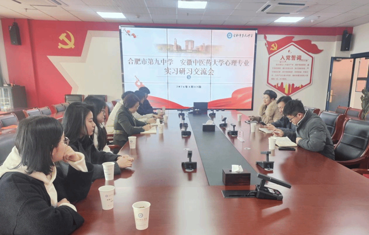 为深化校地合作育人机制,精准对接教育实习需求。1月13日下午,人文与国际教育交流学院党总支书记叶兰兰带队,教学实习办魏子琦携6名2026届本科生赴合肥九中(新站校区)开展实习送岗暨访企拓岗活动。合肥九中副校长范玮、教务处副主任王兴、心理教师徐梦琨对学院一行表示热烈欢迎。