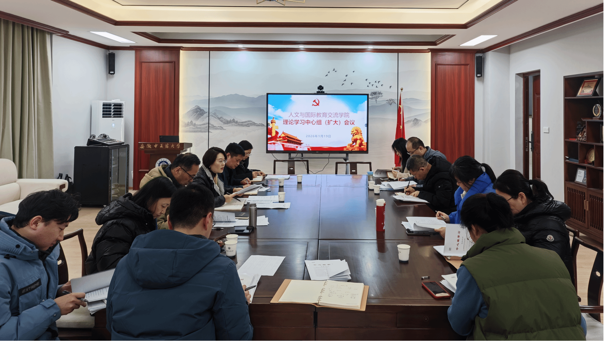 1月19日下午,人文与国际教育交流学院党总支召开2026年第一次理论学习中心组(扩大)会议,锲而不舍落实中央八项规定精神,推进作风建设常态化长效化,部署学院2025年度处级领导班子和党员处级干部民主生活会等工作。会议由学院党总支书记叶兰兰主持,党总支委员、支部书记、各科室负责人参加会议。