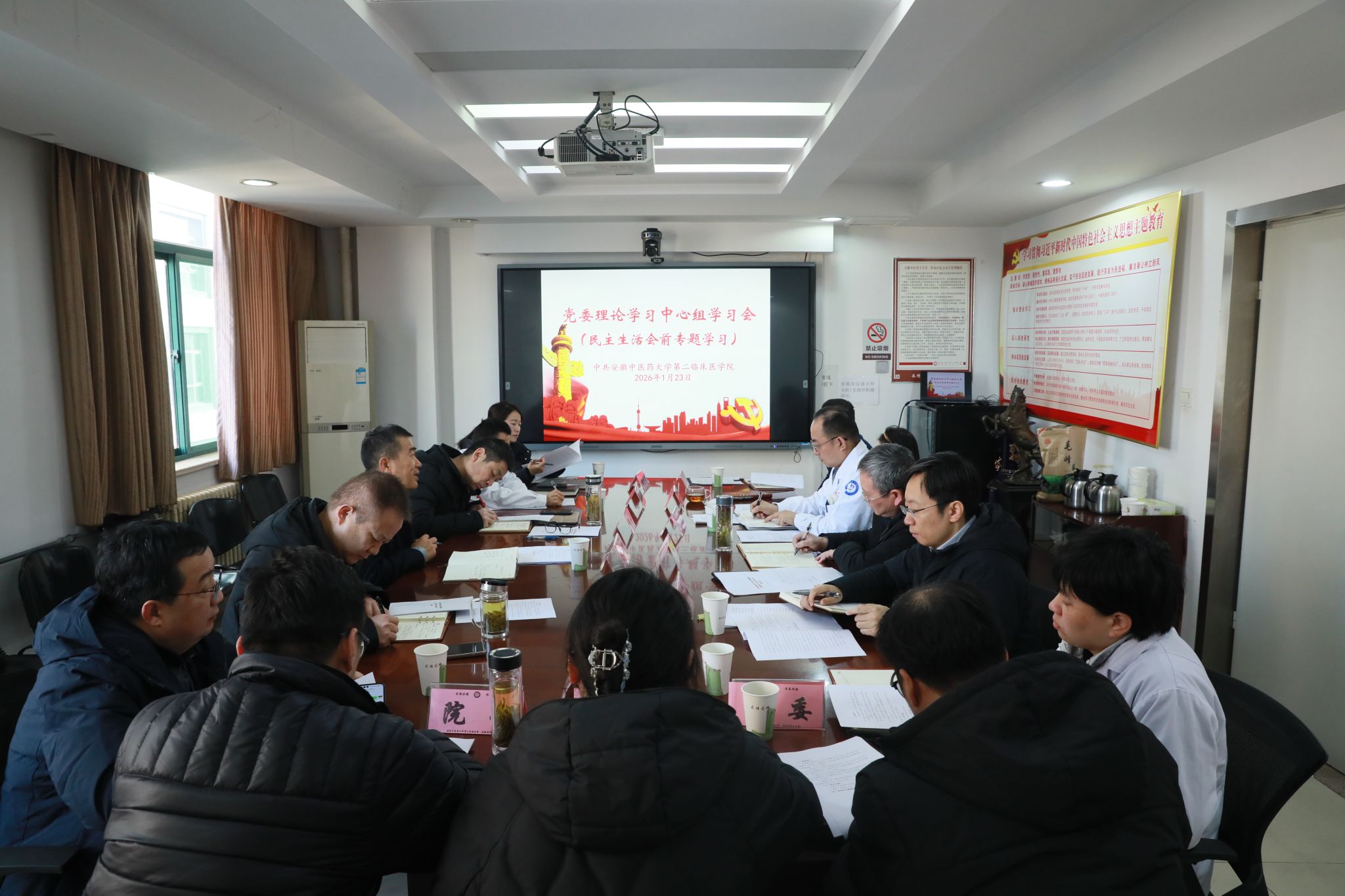 1月23日上午,第二附属医院召开1月党委理论学习中心组学习研讨会暨民主生活会前专题学习。本次学习主题为“深入学习贯彻习近平新时代中国特色社会主义思想,全面贯彻落实党的二十届四中全会精神,深入学习《中国共产党章程》,习近平总书记关于党的建设、党的自我革命的重要思想和关于作风建设的重要论述,深刻认识作风建设的重要性紧迫性,锲而不舍落实中央八项规定精神,为开好2025年度民主生活会打牢思想基础”。党委书记雷黎主持并讲话,医院党委理论学习中心组成员参会。
