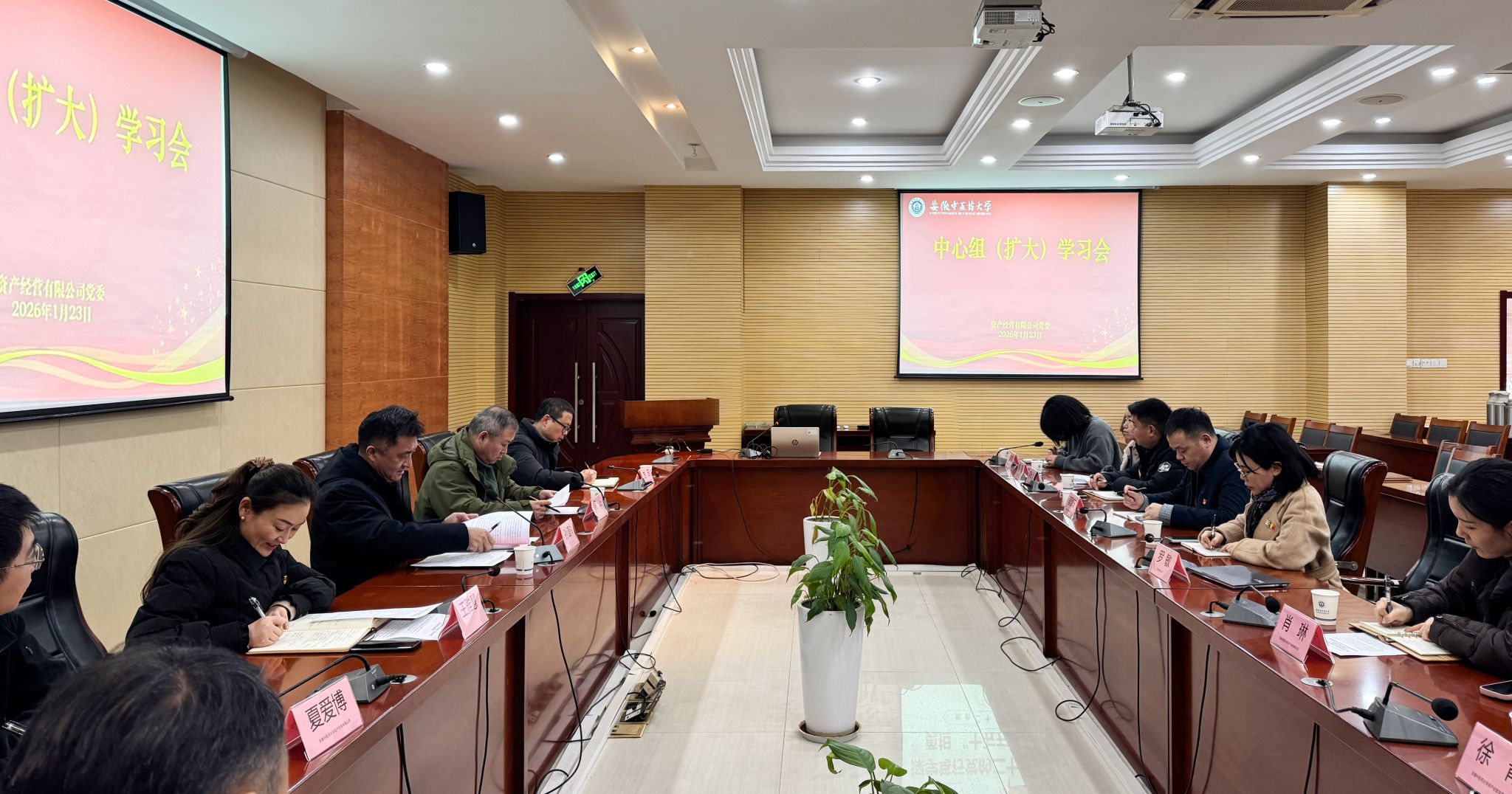 1月23日下午,资产经营有限公司召开2026年1月党委理论学习中心组(扩大)学习会暨民主生活会专题学习会。会议邀请学校党委宣传部副部长张磊作党的二十届四中全会精神宣讲,公司党委委员、副总经理、党支部书记,以及党群部、综合办负责人参加会议。会议由公司党委书记、董事长孙道礼主持。