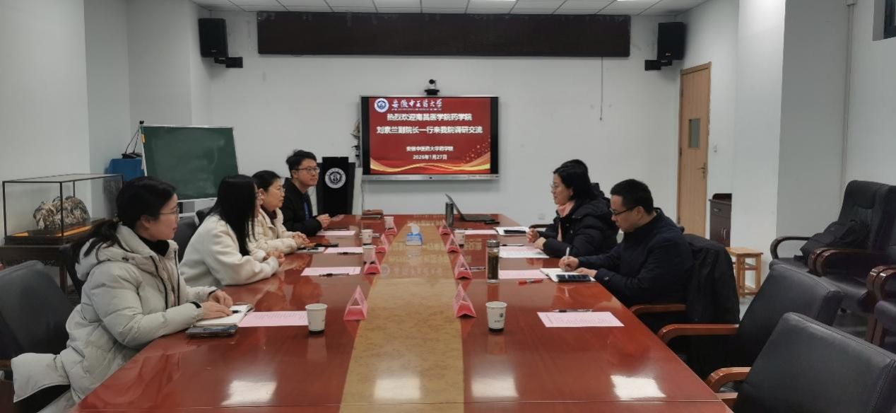 1月27日上午,南昌医学院药学院副院长刘素兰、副院长胡慧明、中药学专业负责人马越兴、专业课教师王丽霞等一行来学院调研交流,就产业学院建设、中药学专业认证及专业人才培养等内容开展座谈。药学院执行院长韩岚主持交流座谈会,学院相关负责人参加交流。
