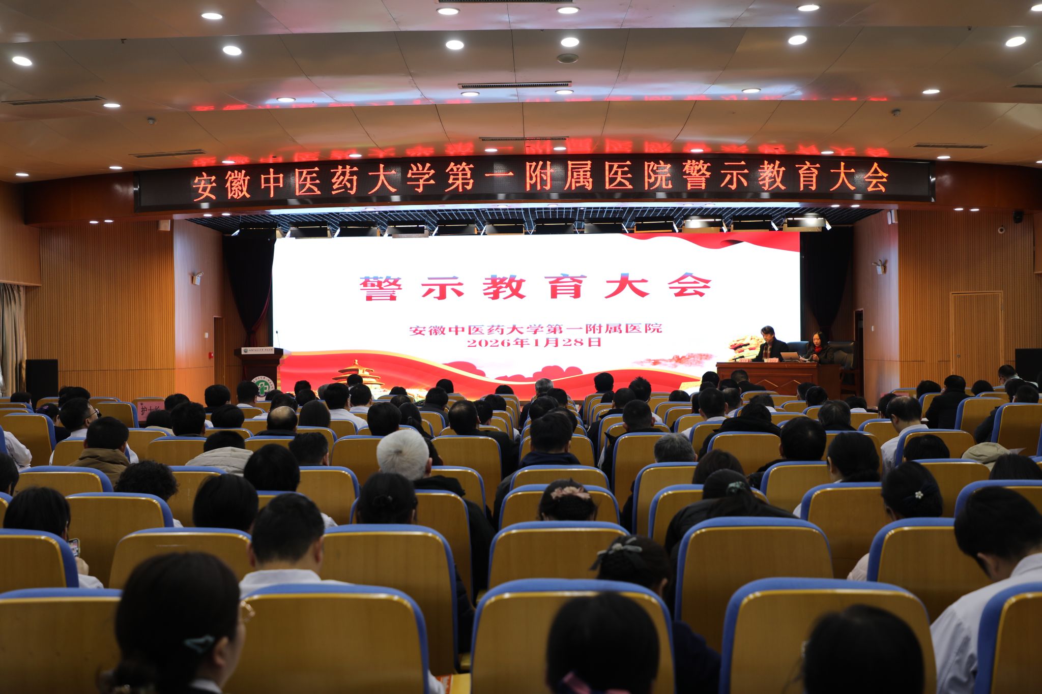 1月28日下午,医院召开警示教育大会,学校党委常委、副校长,医院党委书记聂久胜主持会议并讲话。党委副书记、院长瞿惠燕,常务副书记胡波,党委副书记宋婷婷,纪委书记周其艳,总会计师武镝,副院长黄传兵、汪瀚、段志祥,党委委员、工会主席殷玉磊及党总支书记、党支部书记、职能部门负责人、业务科室负责人、科护士长、正副护士长等出席参加会议。
