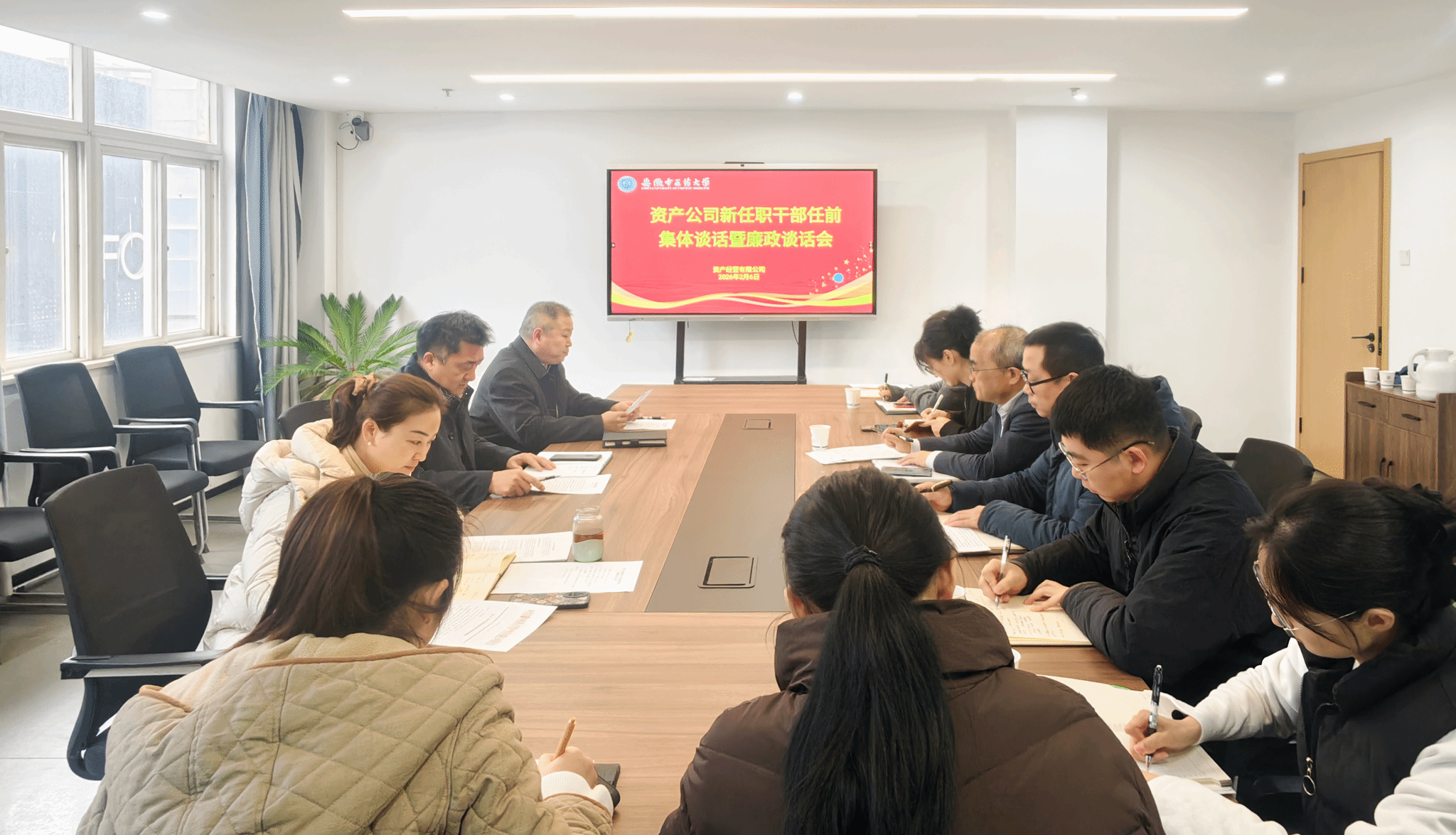 2月6日,资产经营有限公司党委召开会议,对公司新任职干部进行集中任前谈话和廉政谈话。公司党委书记、董事长孙道礼作任前谈话,党委副书记、纪委书记王雅慧作廉政谈话。会议由党委副书记、总经理蔡杰主持。8名新提任及调整岗位的干部参加会议并作表态发言。