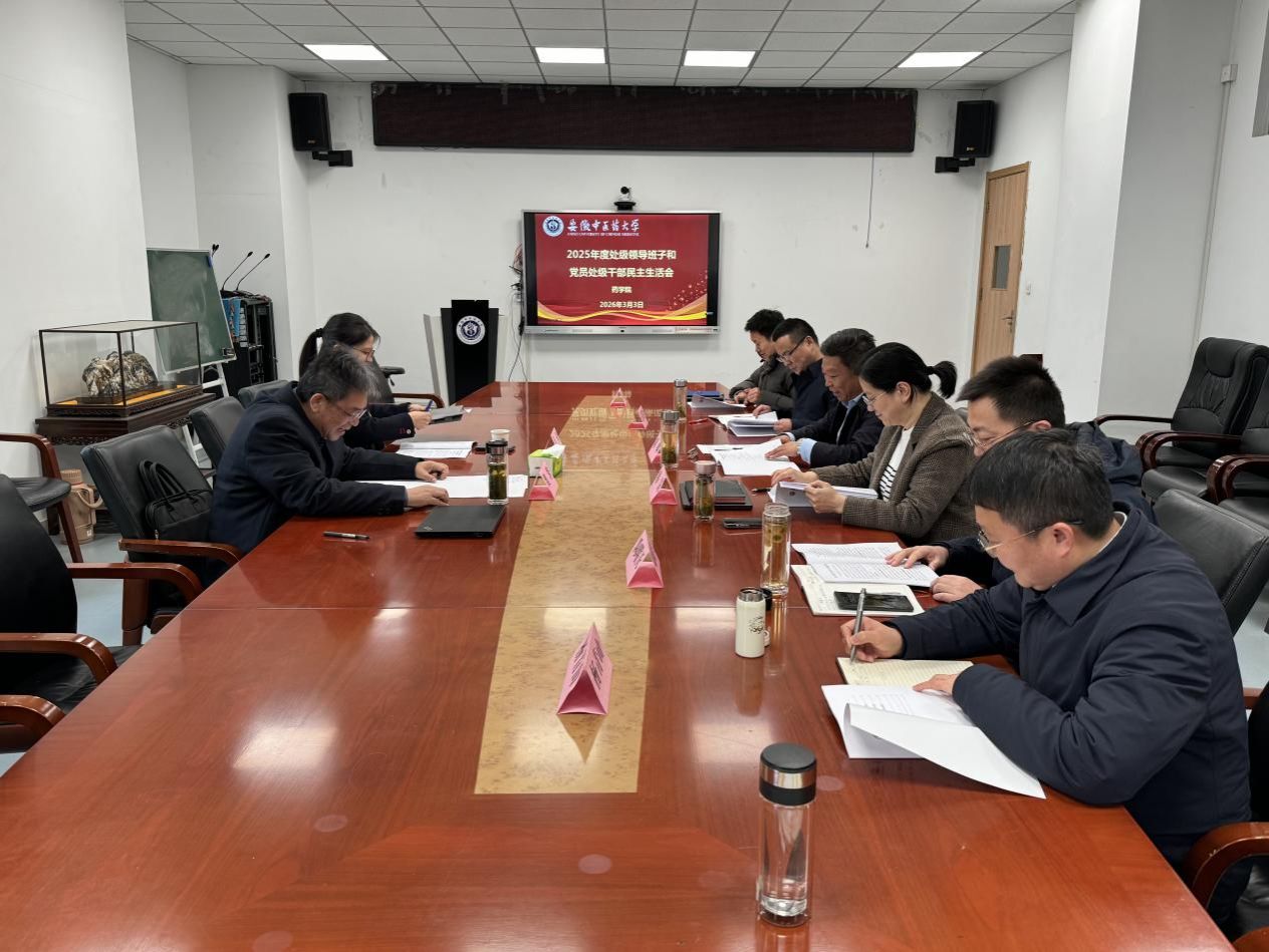 3月3日上午,药学院党委召开2025年度处级领导班子和党员处级干部民主生活会。学校党委常委、副校长、第二督导组组长魏骅,督导组成员、发展改革处处长卢蓉到会列席指导。学院领导班子全体成员、党委委员参加会议,会议由学院党委书记胡卿主持。