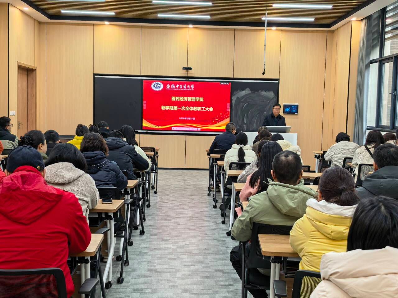 为确保 2025-2026 学年第二学期教学工作平稳有序开展,医药经济管理学院于2月27日组织召开期初教学工作会议,对新学期教学安排、备课准备、课堂管理、实验室保障等工作进行了全面部署。