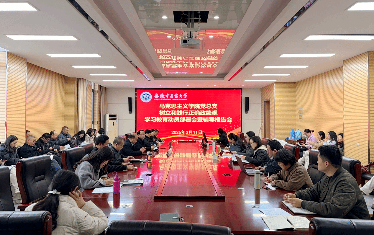 会议学习了中共中央办公厅《关于在全党开展树立和践行正确政绩观学习教育的通知》主要内容,传达了《中共安徽中医药大学委员会关于开展树立和践行正确政绩观学习教育的实施方案》主要部署,布置了马克思主义学院党总支关于开展树立和践行正确政绩观学习教育的工作安排。