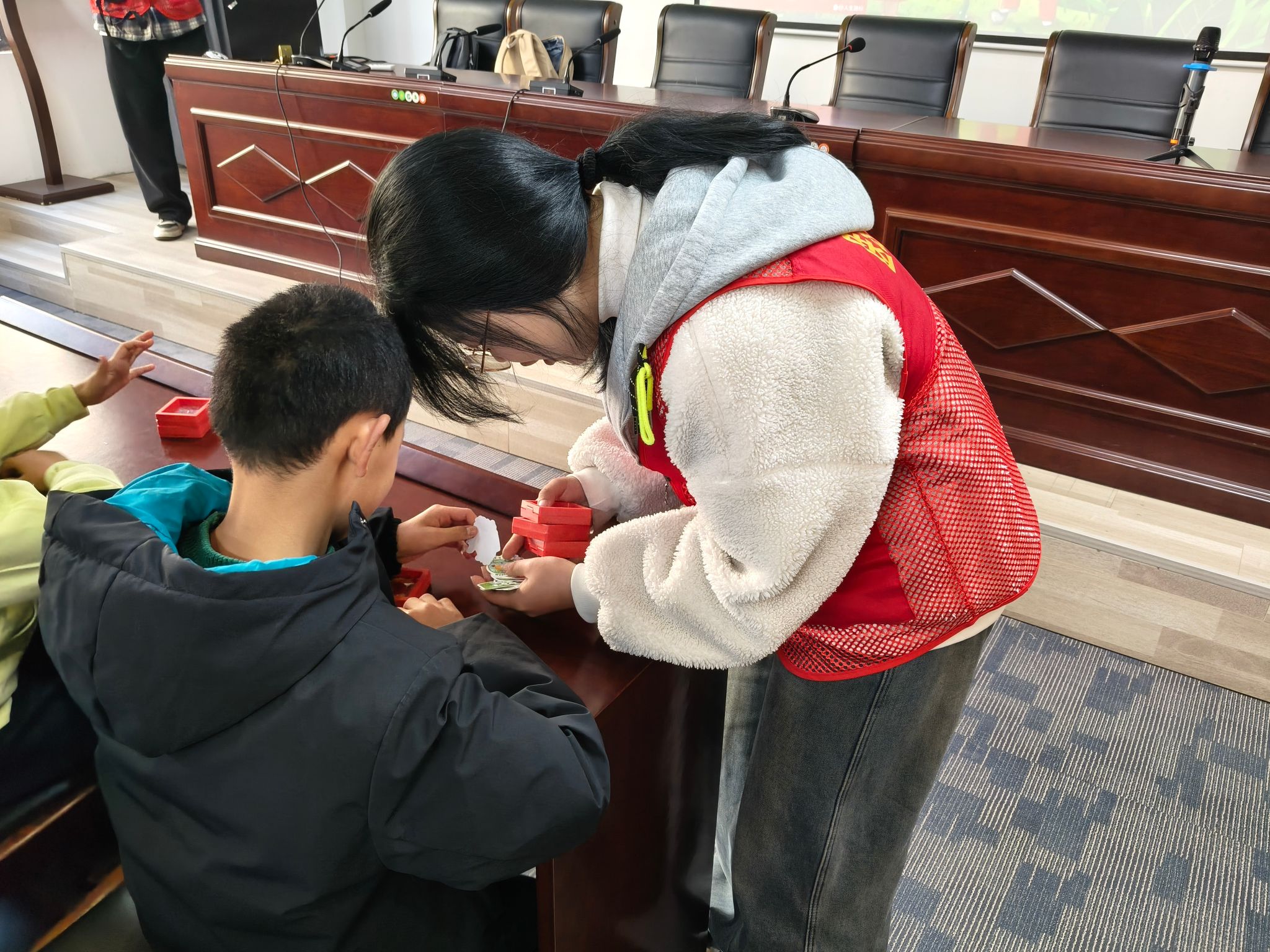 随后,志愿者们组织开展了以“绿色希望”为主题的手工制作与团队协作游戏。孩子们在动手实践与互动合作中,体验了团结互助的快乐,理解了雷锋精神在日常生活中的具体体现,感悟了奉献与环保的意义。现场气氛热烈,孩子们踊跃参与,欢声笑语不断。