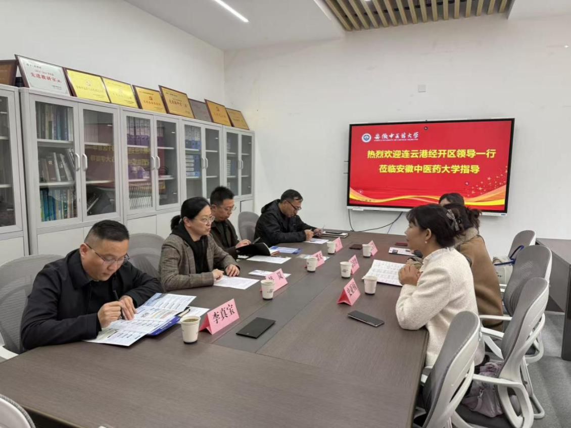 座谈会上,韩岚对连云港经济技术开发区各位领导的莅临表示热烈欢迎,并系统介绍了学院在药学、中药学、生物制药等学科领域的特色优势及近5年来在人才培养、科学研究与社会服务等方面的发展成效。徐铭凰副局长对学院的热情接待与周密安排表示诚挚感谢,并围绕连云港经开区生物医药产业的战略定位、发展现状及人才需求结构作了专题介绍,明确提出希望与我院共建常态化、机制化的人才输送与联合培养通道。桂芳芳处长就连云港市面向高校毕业生的人才引进政策、专项招聘计划及配套支持措施进行了全面、细致的政策解读。