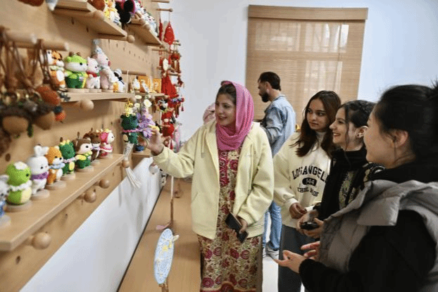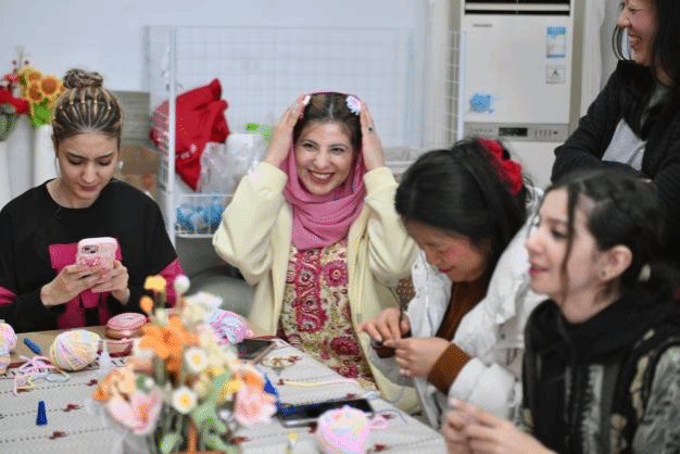 3月18日上午,人文与国际教育交流学院组织5名留学生,在许晶晶、程玲和苏昕老师的带领下,前往瑶海社区浍爱编织坊,参与“巧手匠心学编织”主题文化体验活动,并在活动后接受了中国新闻社的采访。