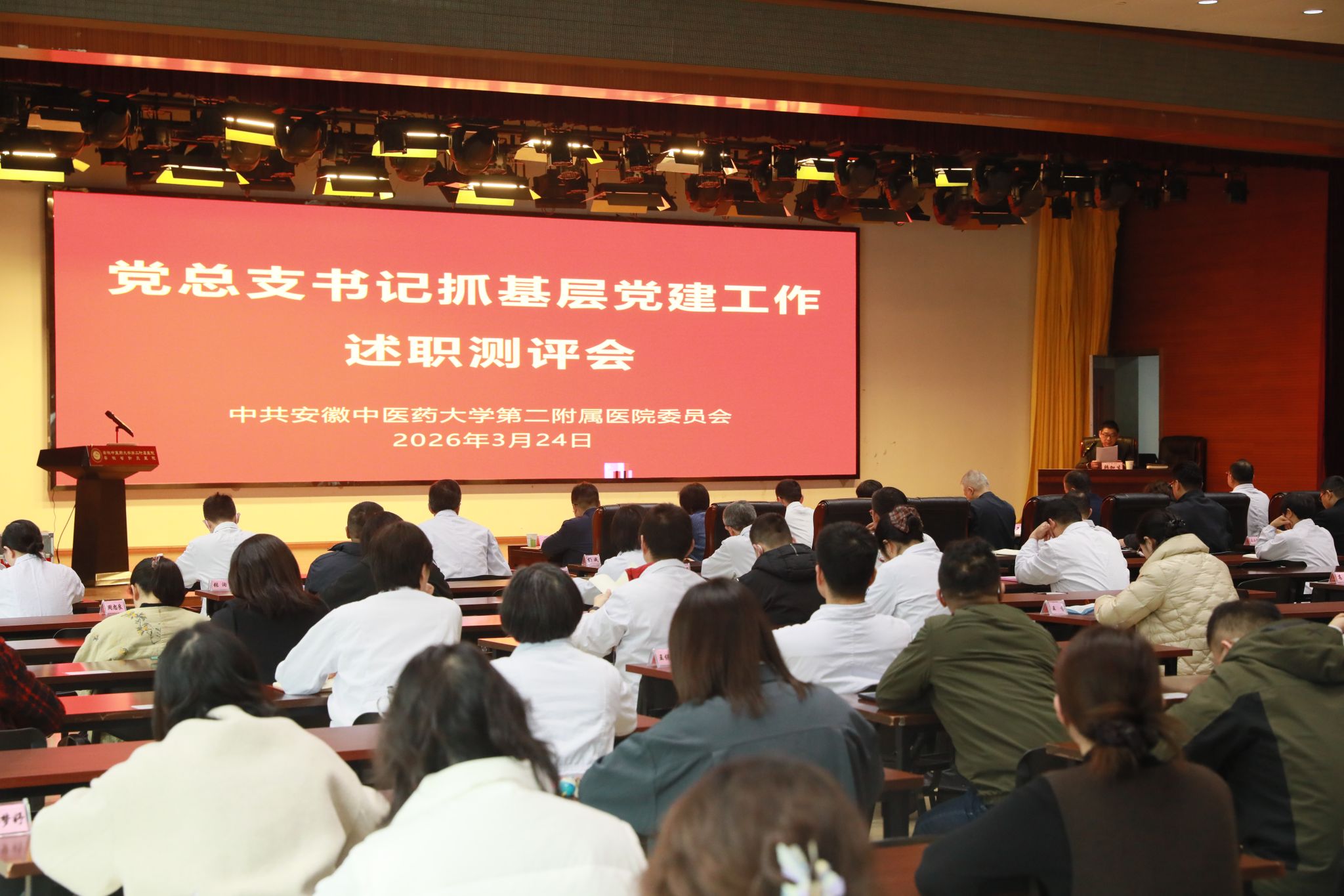 近日,第二附属医院召开2025年度党总支书记抓基层党建工作述职评议暨党建“双创”工作分享会。第二附属医院党政领导班子成员出席会议,党总支书记、党支部书记及全体中层干部参加会议。会议由医院党委副书记韩加生主持。