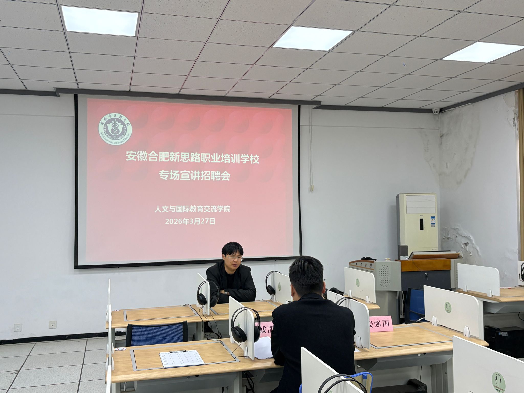 下午,合肥新思路职业培训学校、泰安心康医院同步宣讲,岗位涵盖教育培训、心理健康、临床医学等领域,与学院专业人才培养目标高度契合。