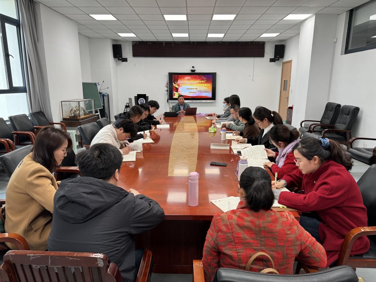 学院党委副书记、纪委书记陶曜天传达学院读书班方案具体安排,领学《习近平关于树立和践行正确政绩观论述摘编》以及梁言顺书记相关讲话精神,并强调要坚持原原本本学、逐句逐段悟,在深学细悟中进一步明晰政绩观的本质内涵与实践要求。