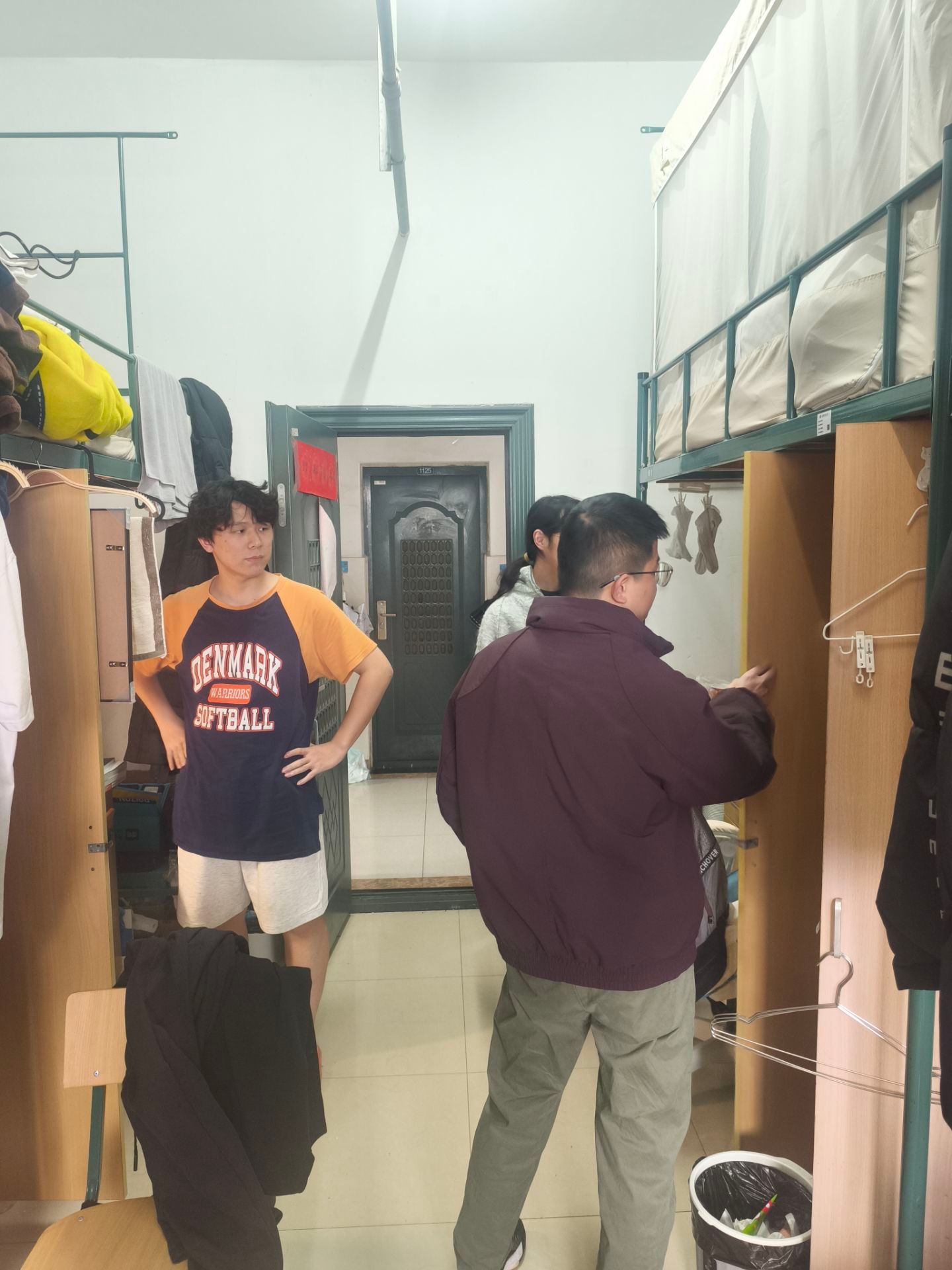 在文明宿舍建设检查上,检查小组着重查看宿舍环境卫生、物品摆放、内务整理情况,引导学生养成良好的生活习惯,保持宿舍干净整洁、通风透气。走访过程中,王向阳与同学们亲切交流,了解大家的学习生活状况、思想动态,耐心倾听学生在宿舍生活中遇到的问题与诉求,叮嘱同学们提高安全防范意识,牢记防火、防盗、防诈骗等安全知识,自觉遵守宿舍管理规定,共同维护文明有序的宿舍秩序。
