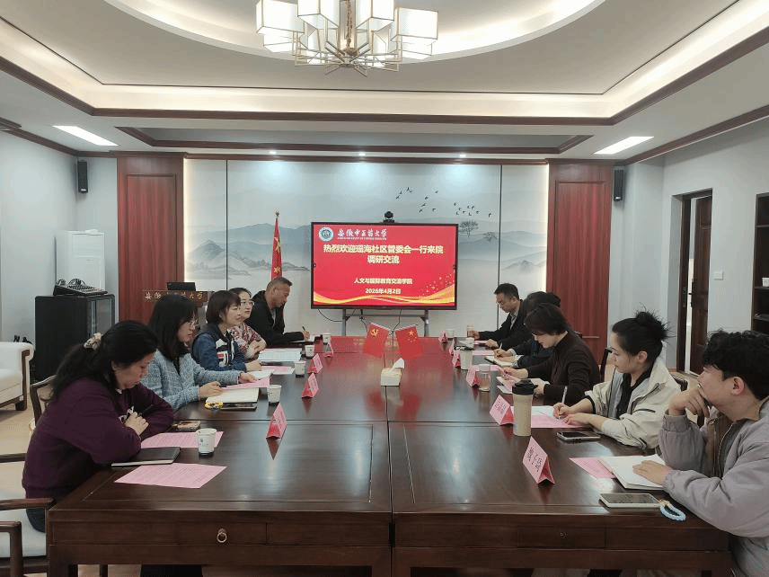 4月2日上午,新站高新区瑶海社区管委会主任、党委副书记姜颖一行到访人文与国际教育交流学院,学院党总支书记叶兰兰,团委、教学办负责人和教工党支部书记等参会。