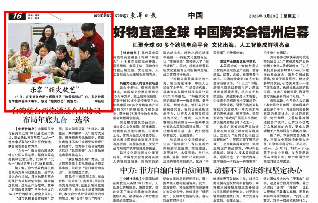 此前,教工第一、第四党支部与瑶海社区共同开展的留学生体验手工编织活动,收到中新社、人民网等媒体高度关注,其中,中新社浏览量100万+,并被柬埔寨主流华媒《柬华日报》刊发。(许晶晶/文图 叶兰兰/审核)