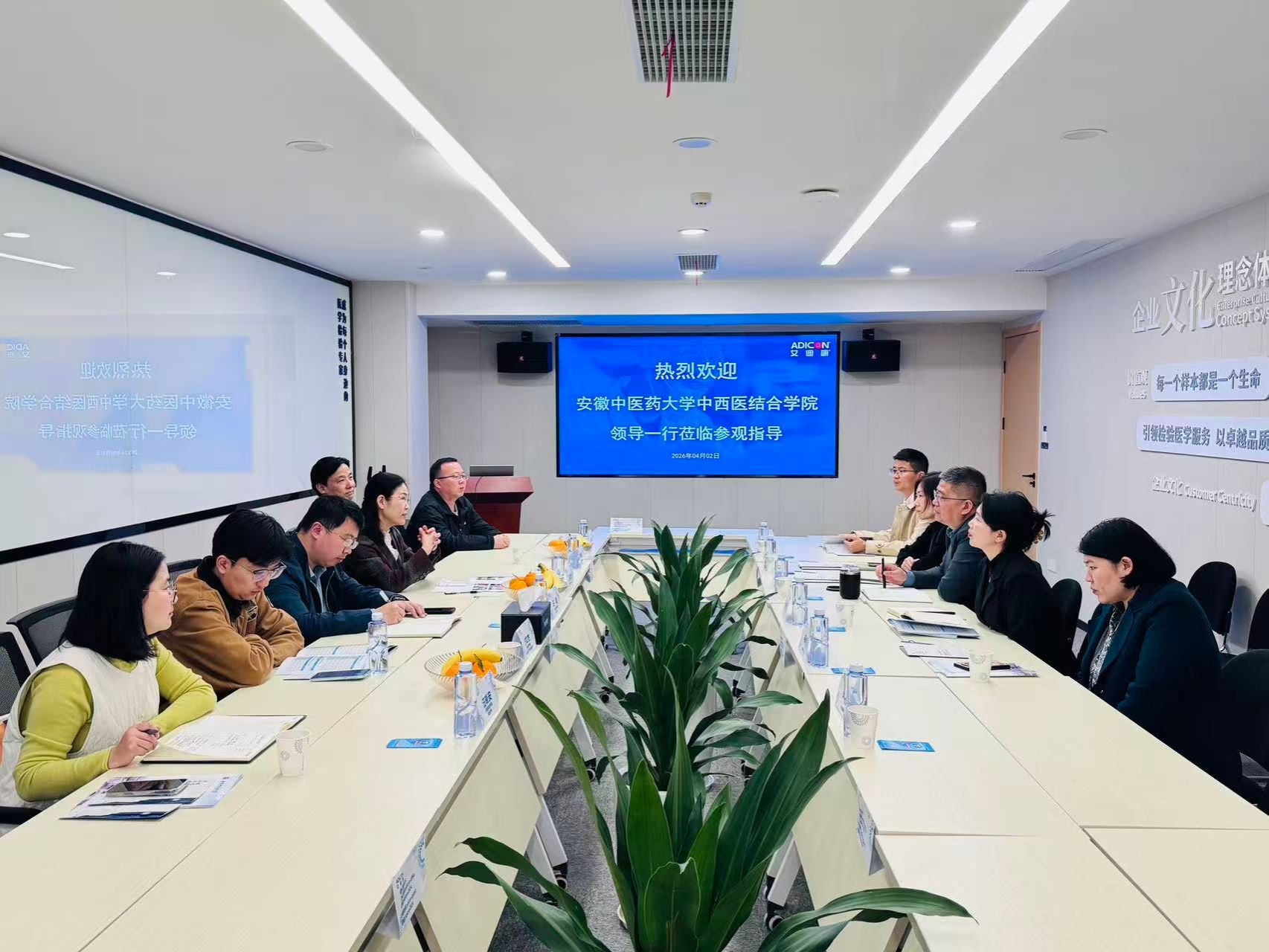 合肥艾迪康医学检验实验室有限公司总经理魏义周致欢迎辞,对学院一行的到访表示热烈欢迎,并详细介绍了企业的发展历程、业务布局及人才需求情况。双方还围绕医学检验技术专业课程优化、实习就业基地建设、联合人才培养模式、科研项目合作等核心议题展开了深度交流。