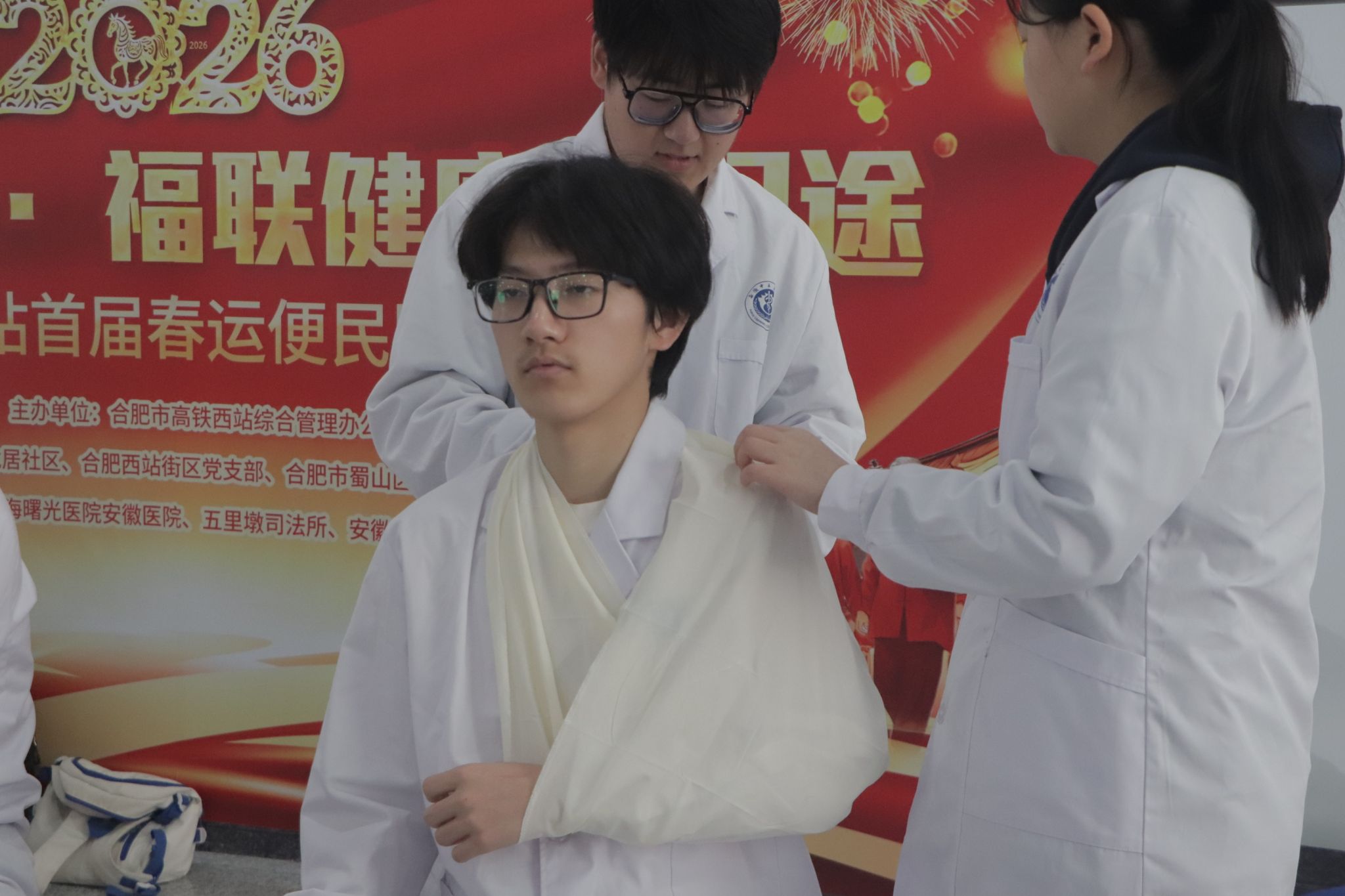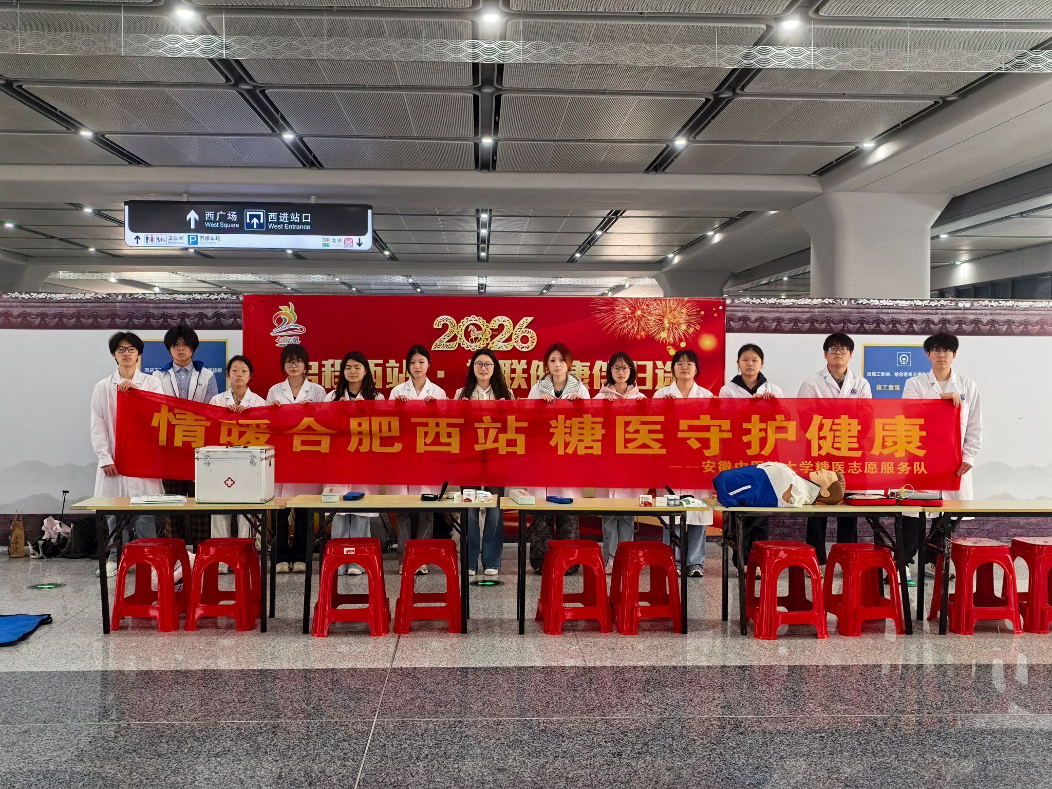 为深入践行志愿服务精神,切实发挥青年学子服务社会、奉献群众的责任担当,进一步推进“合心同行·志愿西站”高校大学生志愿服务项目走深走实,4月11日,中西医结合学院“糖医”志愿服务队前往合肥高铁西站,在西广场及城市通廊区域开展首次便民志愿服务活动。以专业医疗服务为旅客送上暖心关怀,用实际行动展现中医药学子的责任与担当。