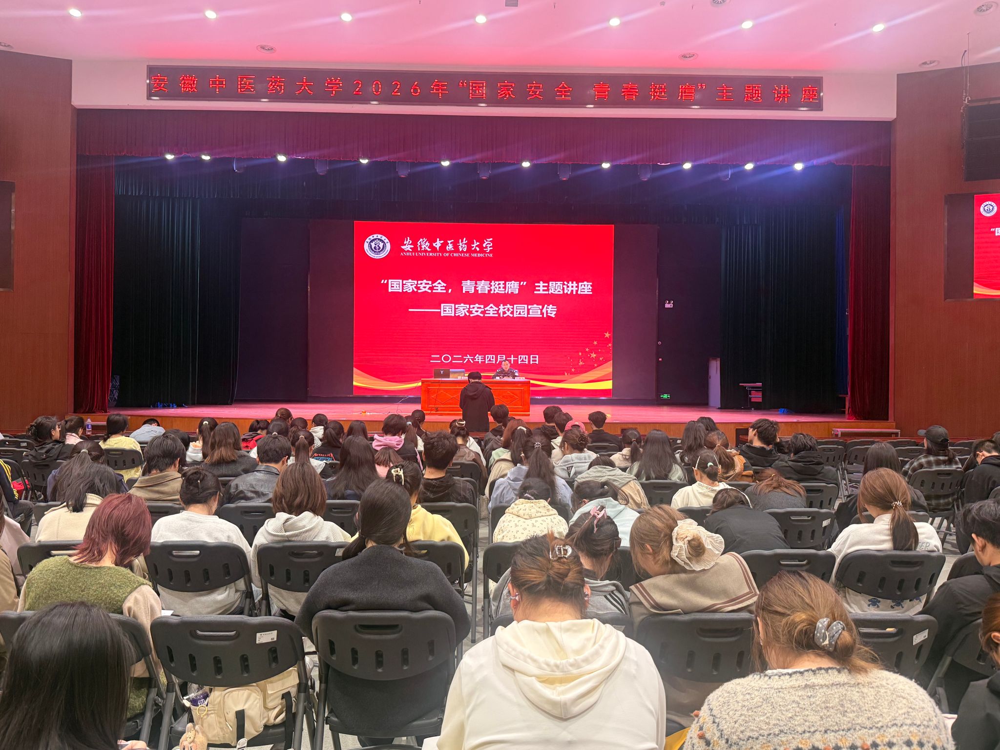 在“十五五”规划开局之年,为深入贯彻总体国家安全观,全面提升青年学生国家安全意识,筑牢校园安全屏障,学校团委联合保卫处举办“国家安全,青春挺膺”国家安全教育专题讲座。本次讲座由合肥市公安局新站分局四级警长任鹏飞主讲,学校团属学生组织干部,一、二年级团支部书记等近300人参加。