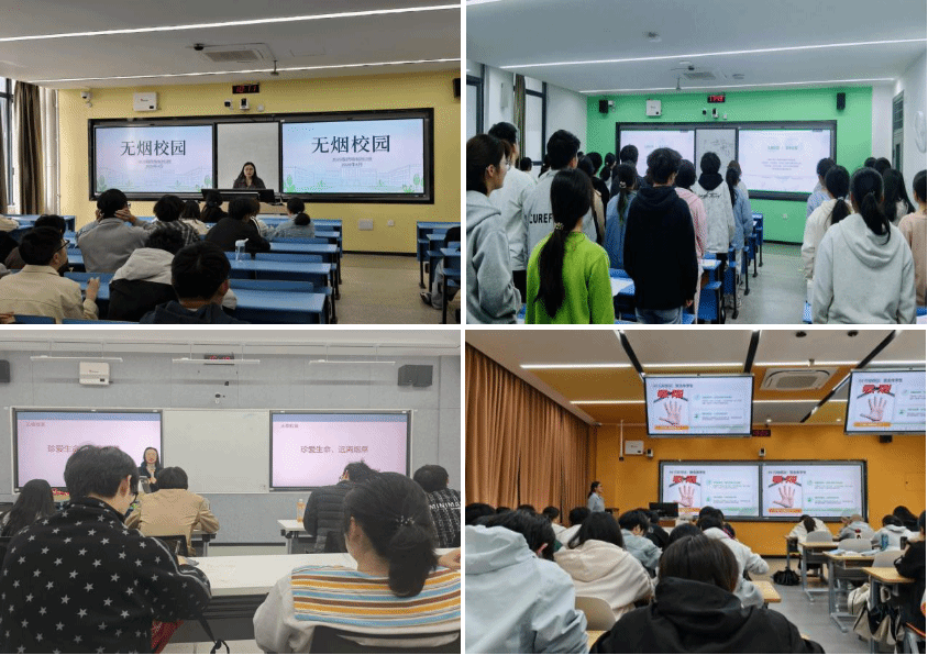 班会现场,辅导员重点解读了学校禁烟管理规定,明确教学楼、宿舍、实验室等校园公共场所一律禁止吸烟,详细说明吸烟造成校园财产损失的处理办法,引导学生树立“规则意识+健康意识”双重理念,自觉遵守控烟要求。同时,部分班级组织学生开展控烟宣誓、情景模拟,提升学生实际应对能力,将禁烟理念从认知层面转化为行动自觉。