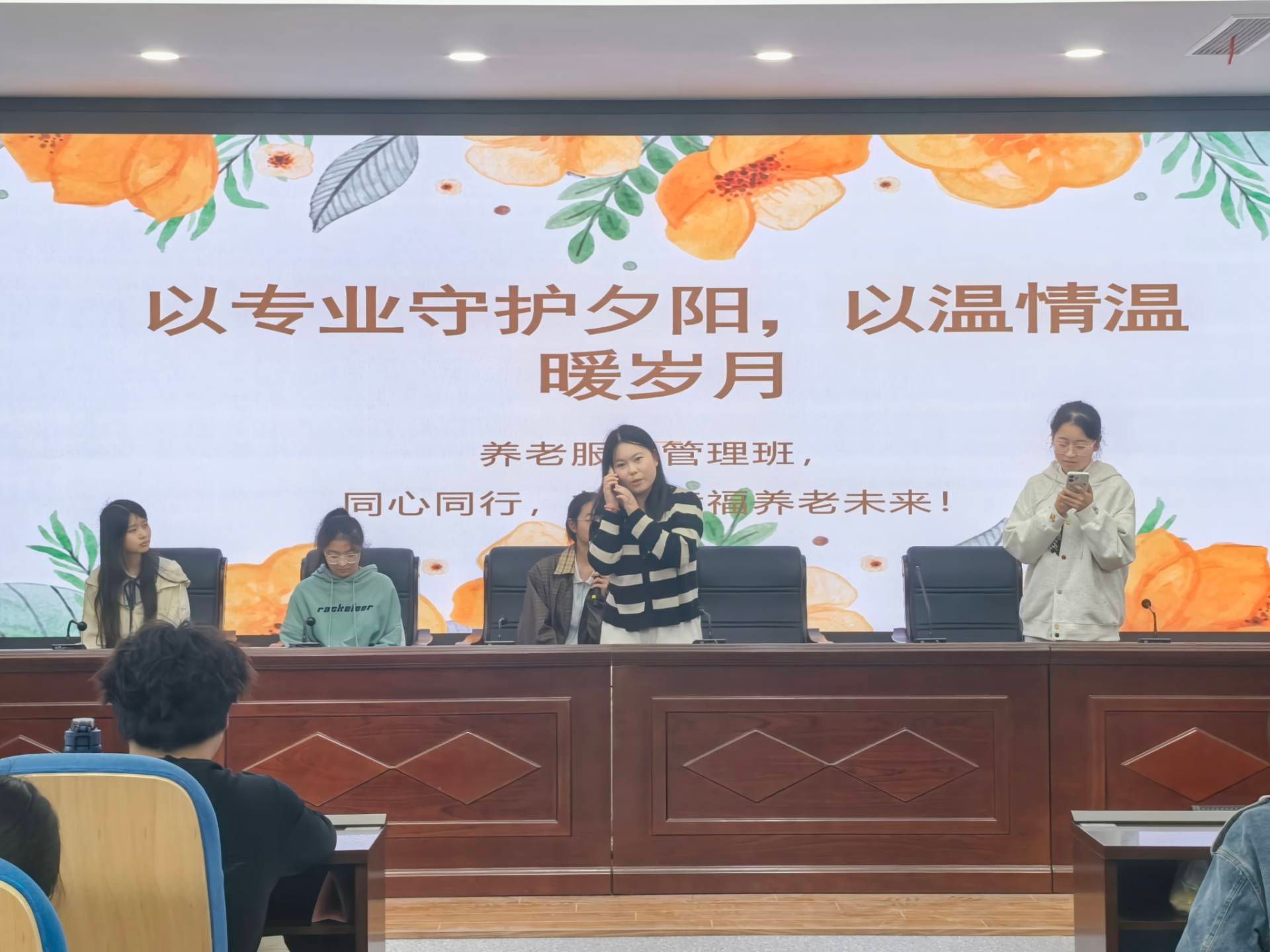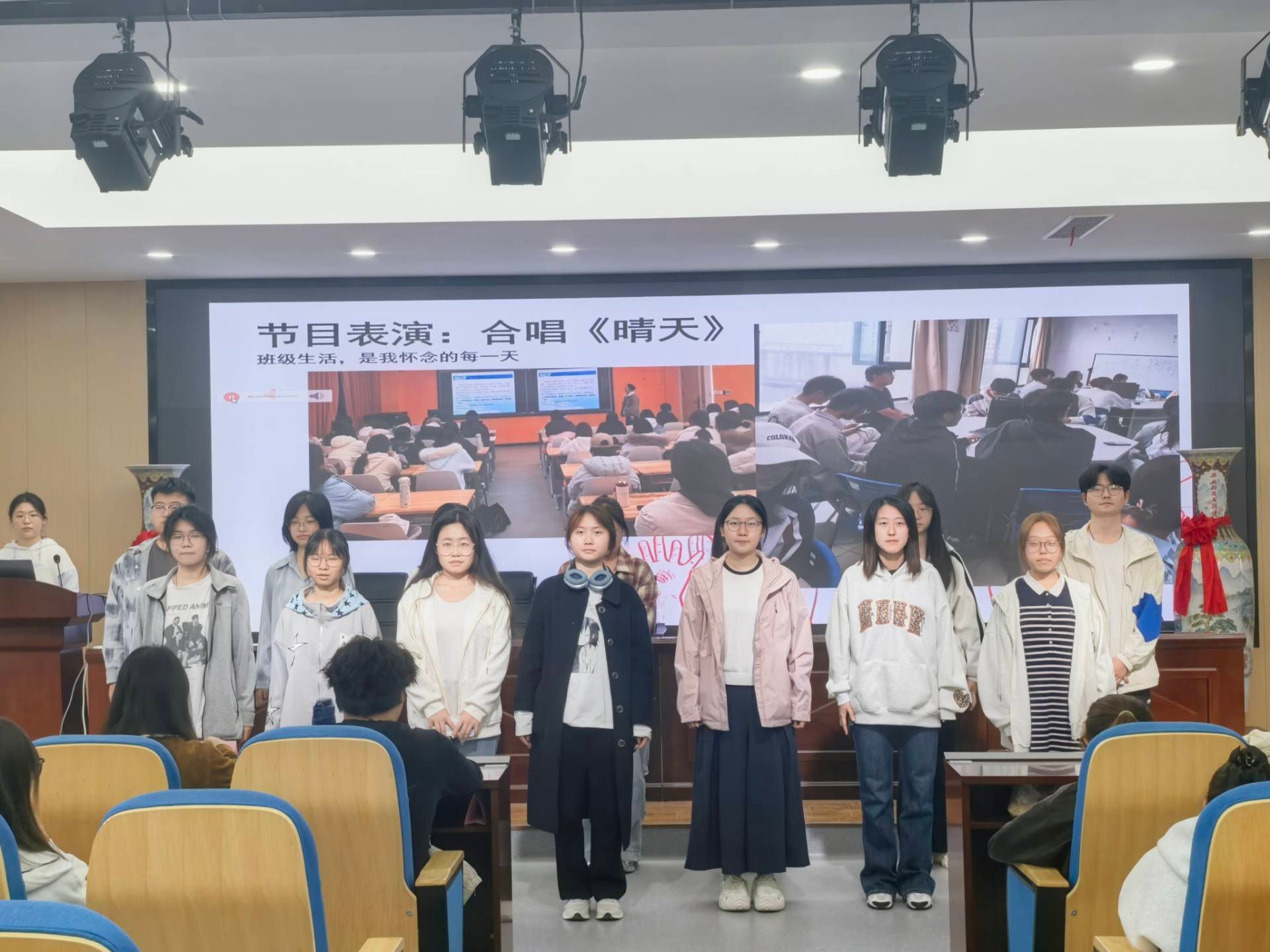 活动在主持人热情洋溢的开场中正式启动。主持人首先介绍了比赛流程及评分标准,随后各新生班级依次登台展示。围绕班级建设、学风培育、文化活动、集体成长等主题,各班通过PPT汇报、特色节目展演等形式,生动呈现了入学以来从陌生到熟悉、从个体走向集体的温暖历程。