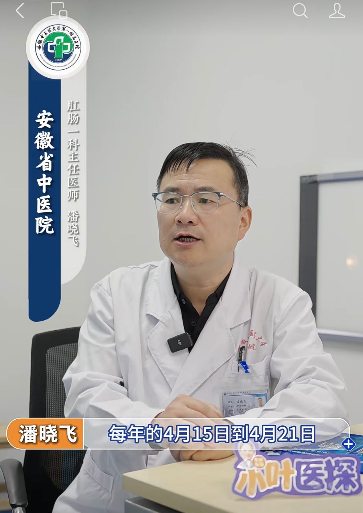 肛肠一科主任医师潘晓飞在接受安徽日报小叶医探采访时说“45岁后定期做肠镜,抓住肠癌5-7年逃生窗口”,潘晓飞表示,肠癌是早期无明显症状的“沉默肿瘤”,肠镜检查是发现早期肠道肿瘤的可靠手段。他明确不同人群筛查标准,45岁以上人群每3-5年做一次肠镜;有肠癌家族史者,筛查年龄提前至40岁,每2年检查一次;出现便血、腹痛、便秘腹泻交替等症状需及时就医。他同时强调,肠道肿瘤癌变有5-7年干预窗口期,及时切除高危息肉可有效阻断癌变,呼吁大众主动筛查、守护肠道健康。