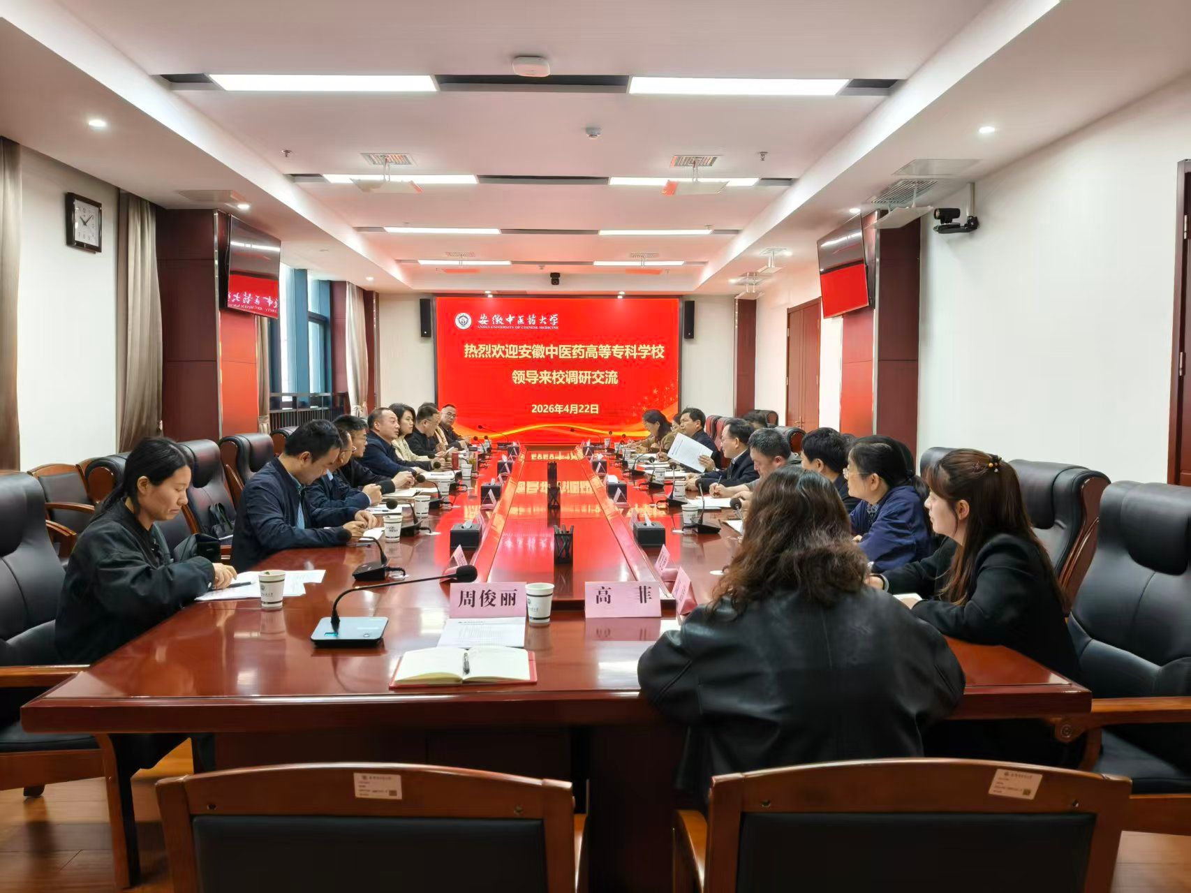 4月22日,安徽中医药高等专科学校副校长张宏一行到我校开展调研交流。安徽中医药大学继续教育学院院长童佳兵,中医学院院长方向明,护理学院院长颜贵明,针灸推拿学院副院长吴子建,财务处副处长潘慧霞,继续教育学院副院长章登飞、侯晓蓉等出席座谈会。会议由童佳兵主持。