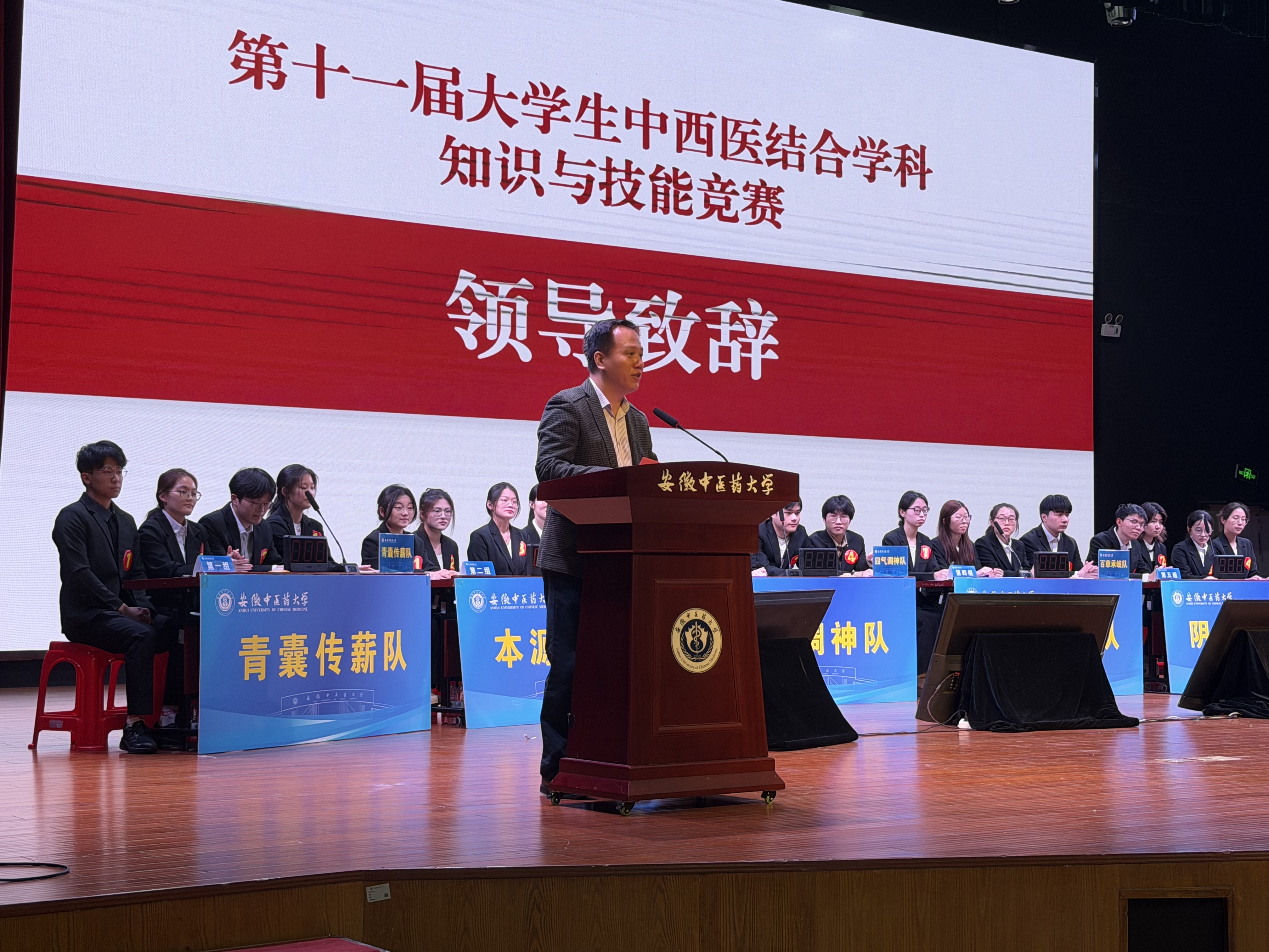 李国强为大赛致开幕辞,勉励中西医学子要坚定文化自信,做中西融合的“探路者”;要苦练临床内功,做护佑生命的主力军;要践行“至精至诚”,做有温度的新时代大医。