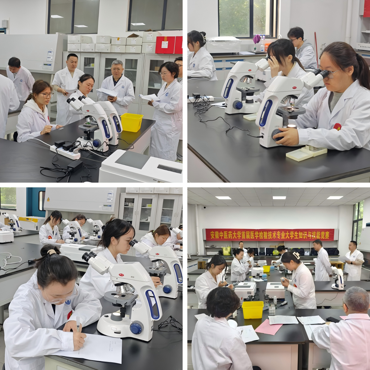 本次大赛共有123名同学报名参赛,经过选拔10名同学晋级决赛。决赛现场,围绕形态学读片分析、ABO血型鉴定、葡萄糖测定、白细胞计数、平板接种及革兰染色等实验项目展开比拼,参赛选手操作规范、技艺娴熟,充分展现了扎实的专业功底。