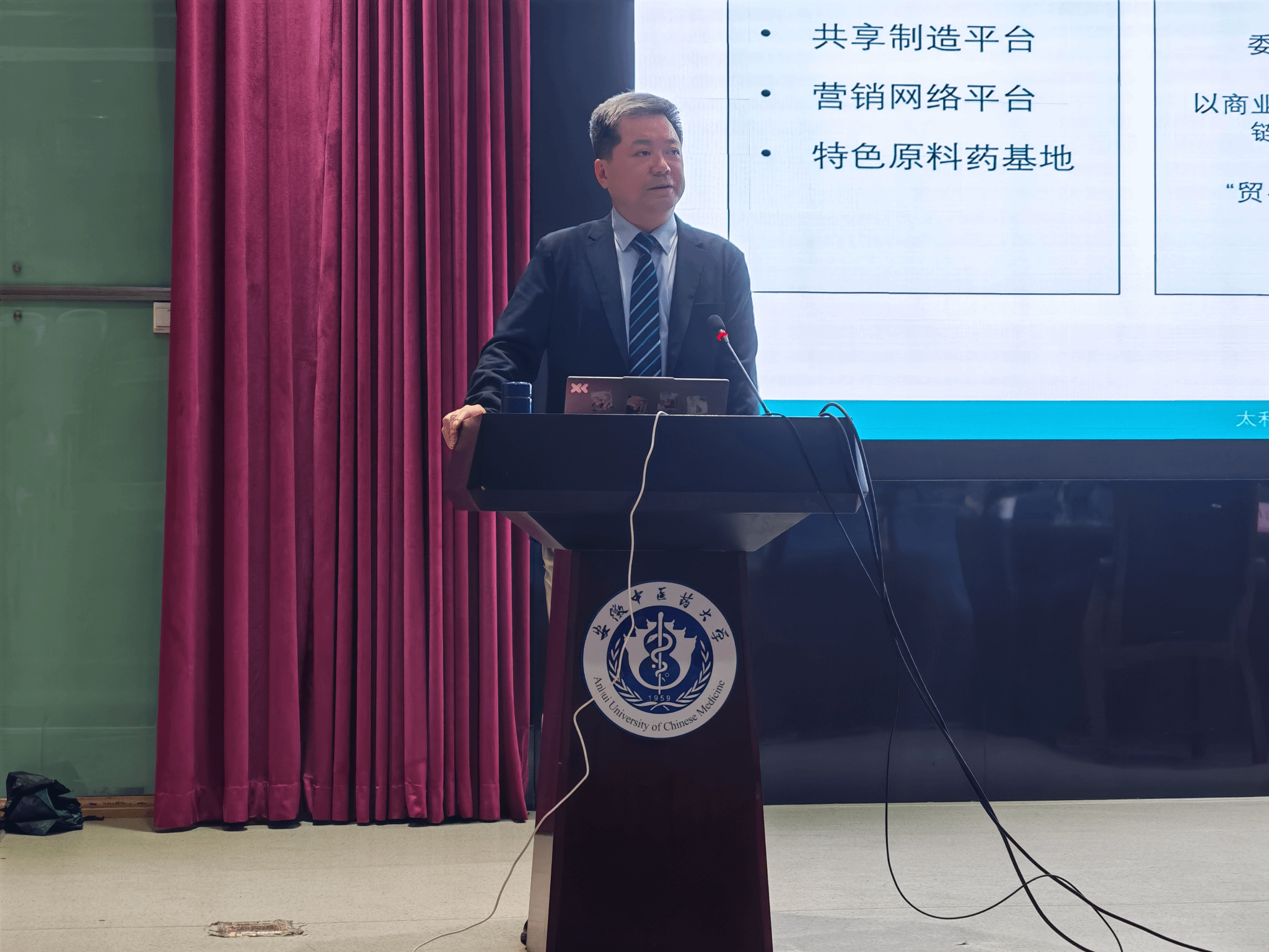 刘大勇指出当前是中医药产业发展以创新驱动和专业能力为主导的价值重构期,并从行业演进现状与未来趋势、保兴产业园产业实践与启示、商业化浪潮下的机遇和挑战等三个方面展开深入讲解。首先,刘大勇研判了医药产业未来行业发展的趋势,包括创新逐步替代仿制、商业化能力成为核心竞争力、基层医疗与中医药领域持续扩容等,他强调高校正处于多重政策红利交汇点,行业增长潜力长期稳健,鼓励同学们坚定专业自信,紧抓政策机遇,提前布局职业发展方向。其次,在产业实践方面,刘大勇介绍了太和保兴医药健康产业园的“保兴模式”,其核心是平台思维、市场逻辑、资本力量与生态理念的有机结合,通过三维一体的合作模式构建全产业链生态,并推行“共有经济”理念,实现价值创造者与资本提供者共同参与企业治理,为同学们理解现代医药企业运营模式提供了鲜活案例。最后,刘大勇分析了行业面临的若干机遇与挑战,强调商业化能力是实现产业价值闭环的关键,行业亟需既懂医药、又懂商业与政策的复合型人才,勉励同学们在校期间注重跨学科知识积累与实践能力培养。