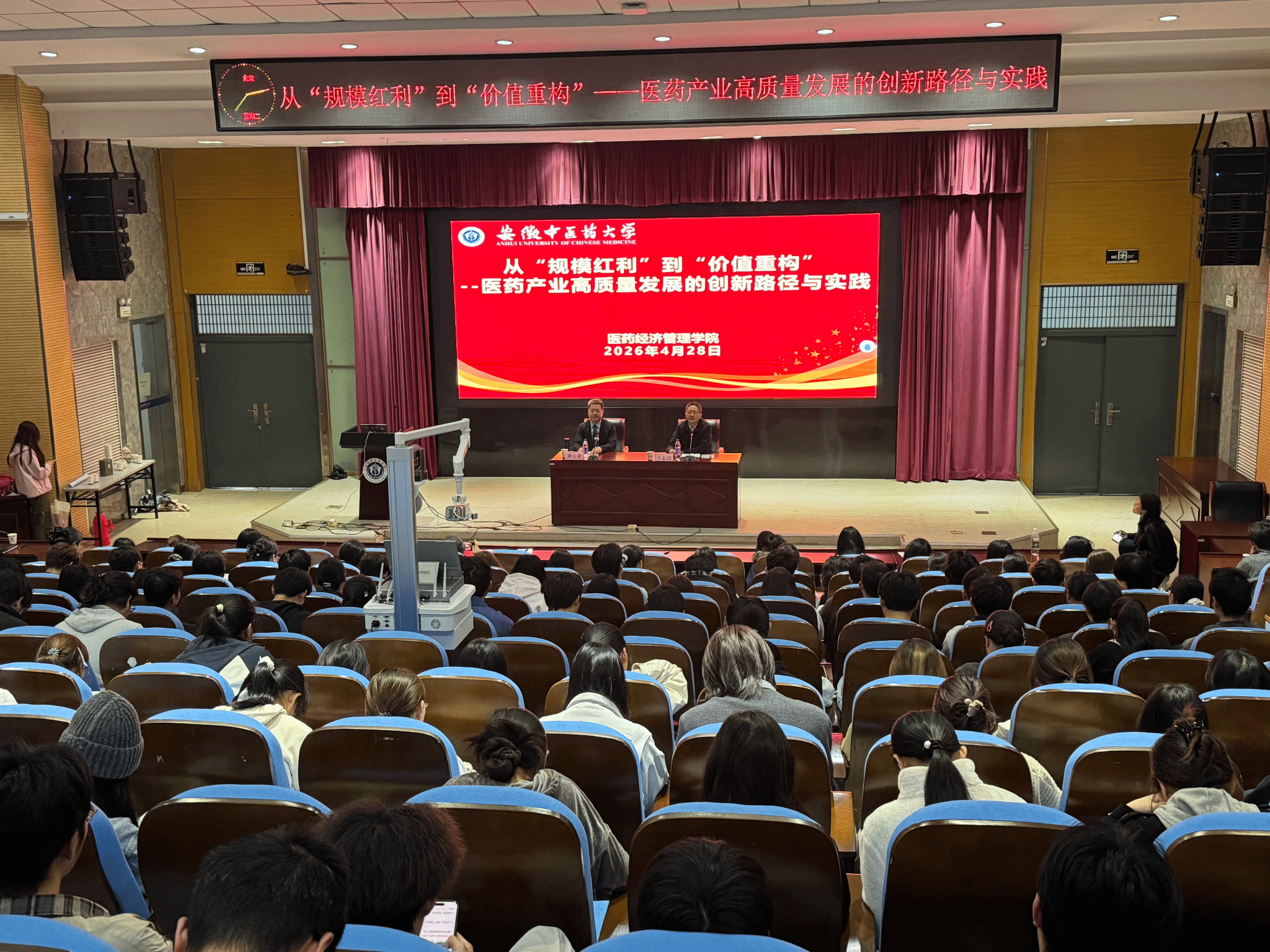 为帮助学生准确把握医药产业发展趋势、深化对行业创新路径的理解,4月28日,医药经济管理学院顺利举办第三期“经世济民”学术论坛。本次活动特邀太和保兴医药健康产业园执行总裁刘大勇作题为《从“规模红利”到“价值重构”——医药产业高质量发展的创新路径与实践》的主题报告。论坛由学院院长丰志培主持,300余名师生参加。