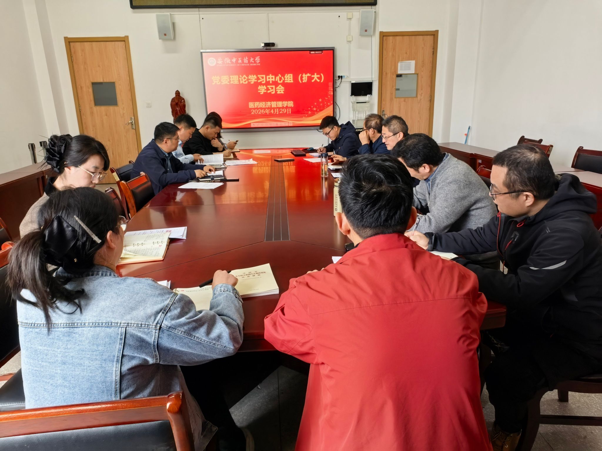 4月29日,医药经济管理学院召开党委理论学习中心组(扩大)学习会,专题学习习近平总书记考察安徽重要讲话精神,聚焦树立和践行正确政绩观,围绕推动中医药康养与文旅产业融合发展谋划“经管作为”。学院党政领导、党委委员及各党支部书记参加会议。会议由学院党委书记张军主持。