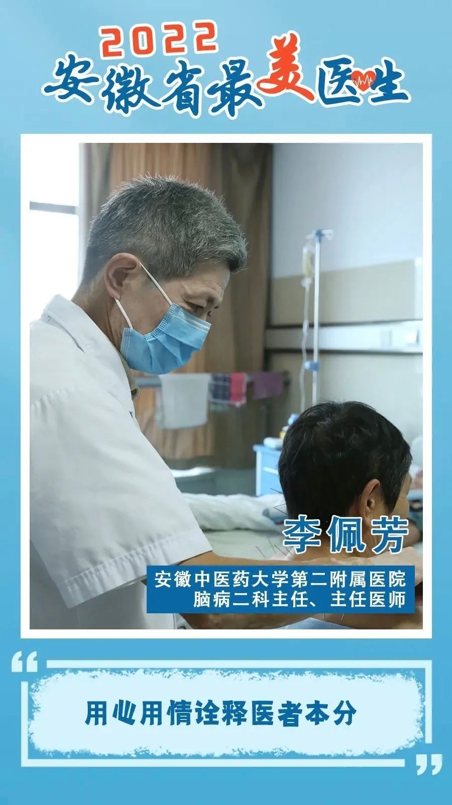 在安徽中医药大学第二附属医院的脑病科病房里,总能看到一个身影步履匆匆却目光沉静——他是主任医师李佩芳,更是学生口中那位“从不缺席的导师”。从医三十余载,执教多年,他以医者仁心守护生命,以师者匠心培育桃李,用实际行动诠释着“大医精诚,师道相传”的深刻内涵。