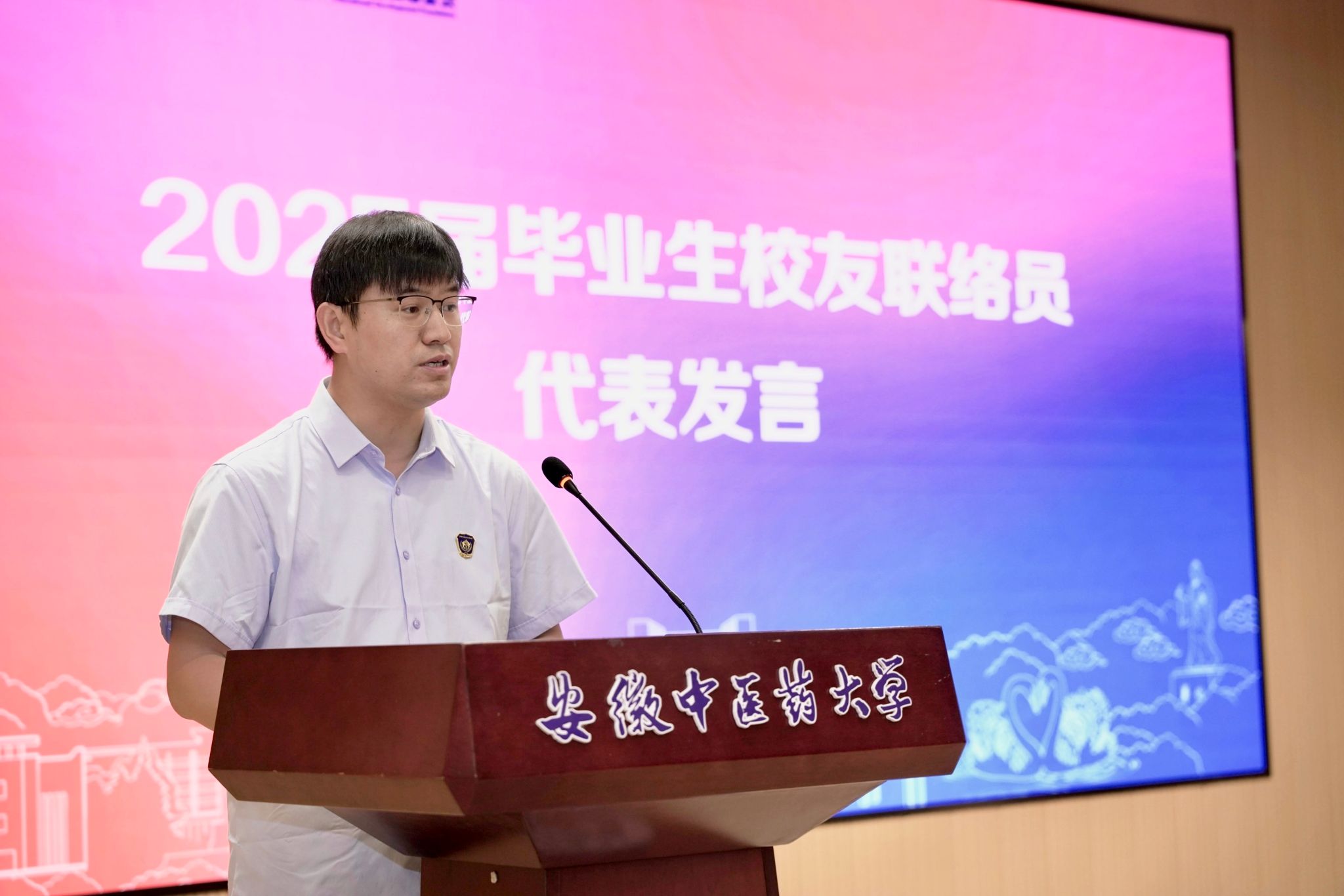 聂久胜祝贺同学们顺利毕业并受聘为学校2025届毕业生校友联络员,欢迎大家正式加入校友服务的核心队伍,也感谢大家以实际行动诠释对母校的深情厚谊。他介绍了学校校友会的发展情况,并指出,校友工作是学校工作的重要组成部分,是学校教育事业发展的重要推动力量。他对校友联络员们提出殷切期望,一要做安中医精神的新时代传播者。继承发扬安中医精神,在中医药传承创新、健康中国建设中书写更多精彩故事;二要做校友情感网络的专业编织者。增强校友对母校的归属感、荣誉感,让母校成为校友的精神家园、心灵港湾和事业发展的坚强后盾;三要做母校发展的深度参与者。发挥好纽带桥梁作用,凝聚团结更多校友的资源和力量,推动母校“双一流”建设。
