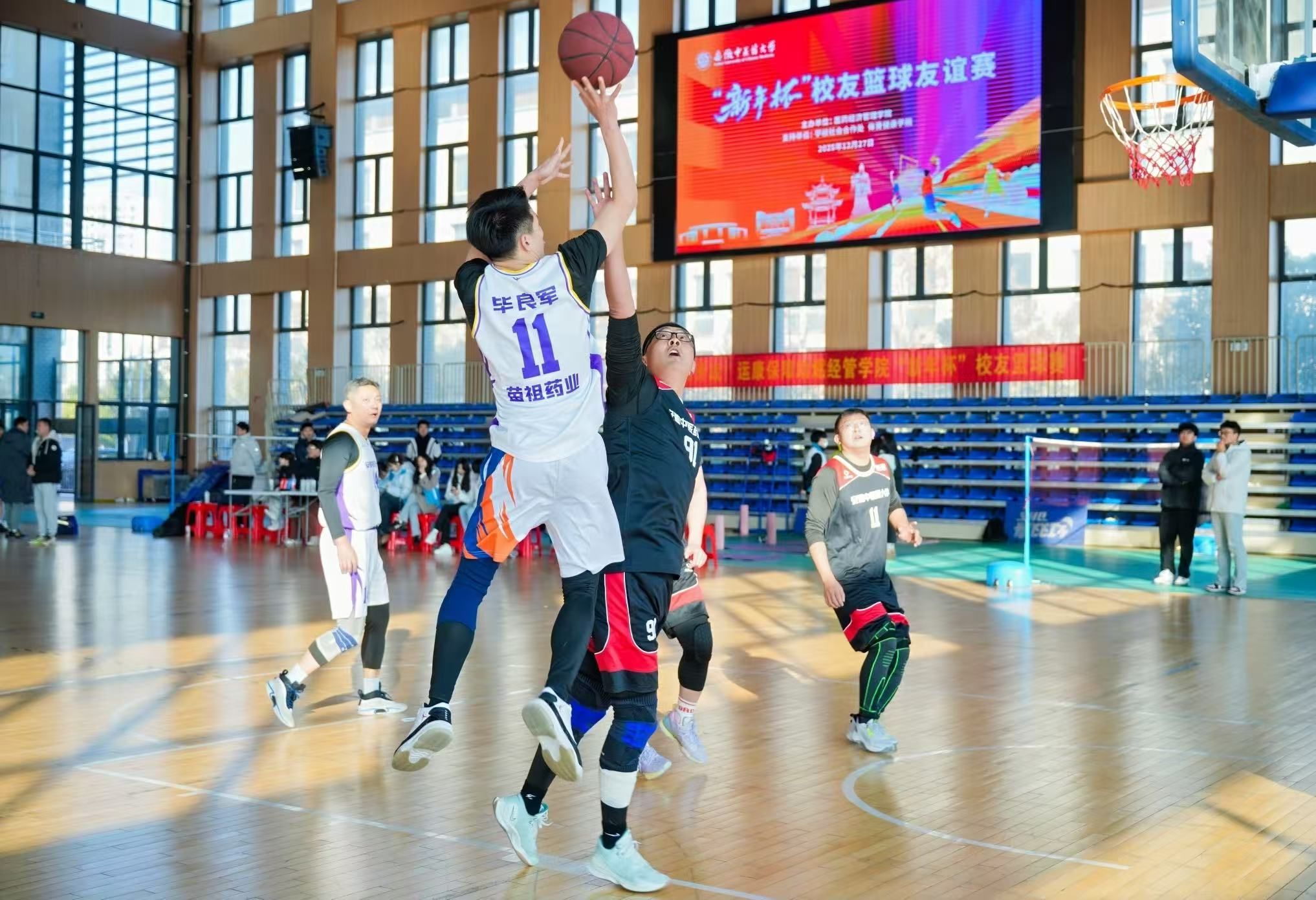 12月27日上午,医药经济管理学院在少荃湖校区室内篮球场成功举办“新年杯”校友篮球友谊赛。来自全国各地的校友与学院教职工齐聚一堂,以一场激情澎湃、温情洋溢的篮球大派对,共叙同窗情谊,凝聚奋进力量,为2025年注入活力与希望的收官之笔。
